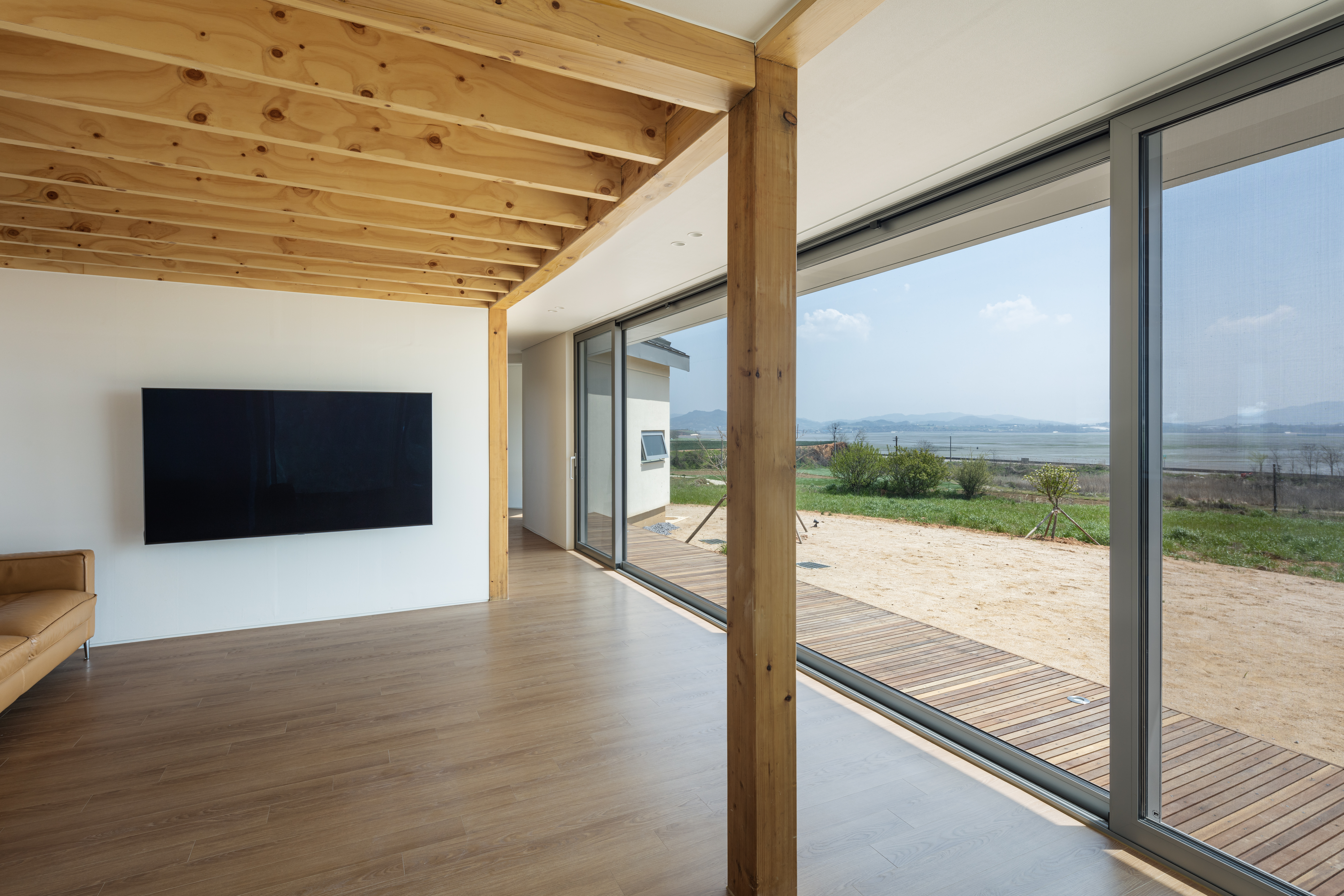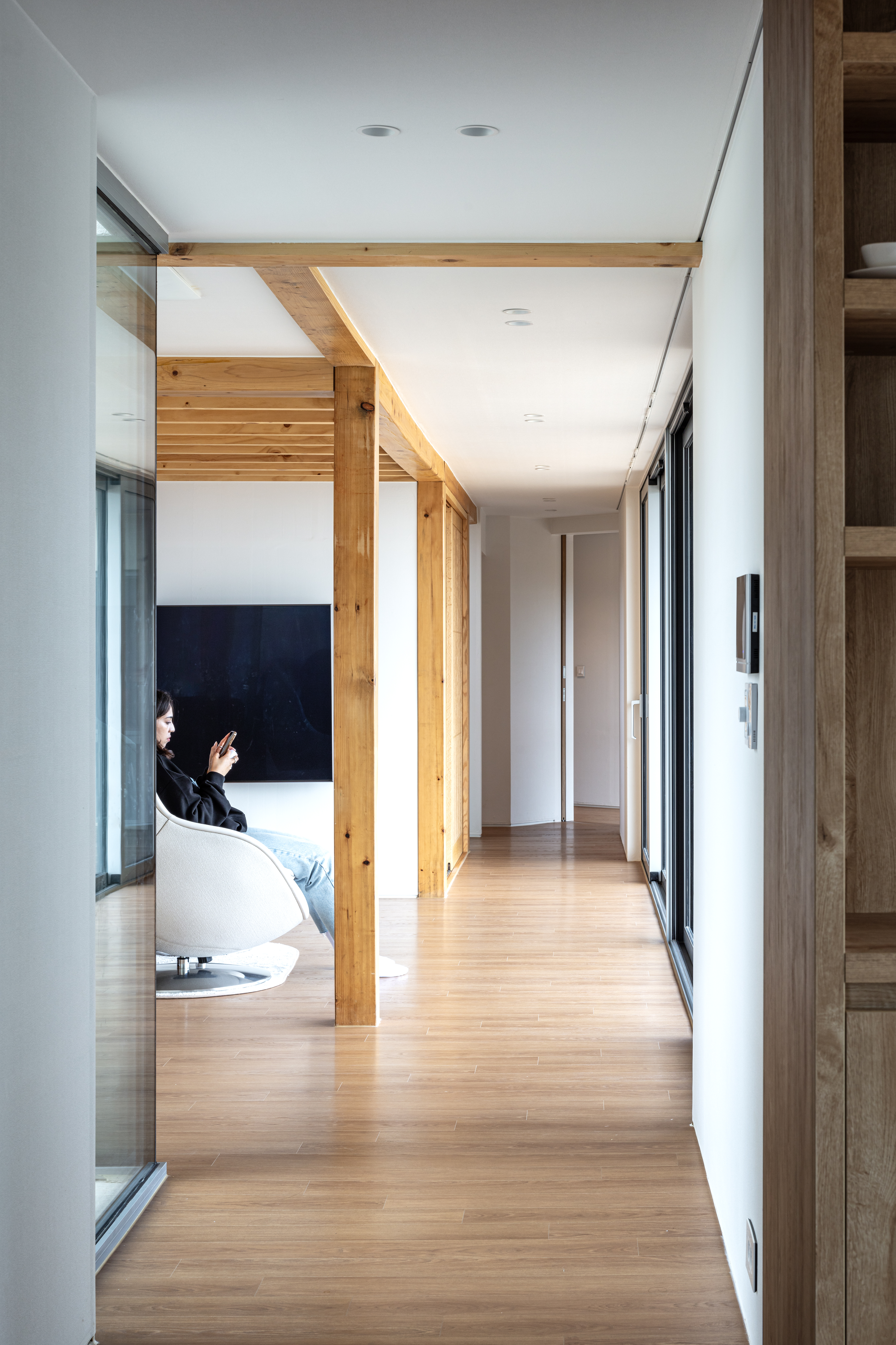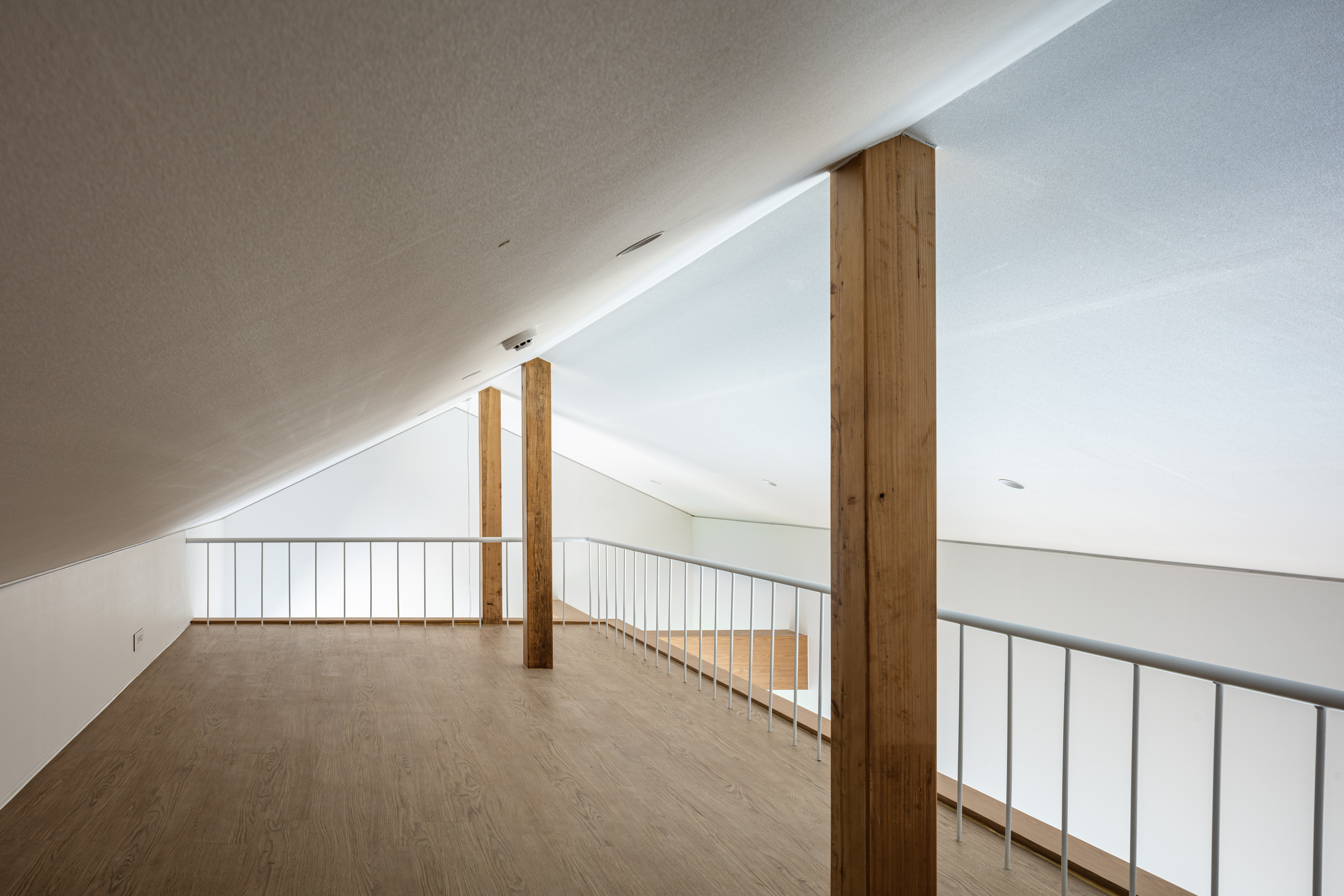 Due to the sharp increase in construction costs after COVID-19, we selected lightweight wood framing as the primary structure an economical alternative to other structural systems. Unlike post-and-beam wood structures, this wall-based system typically conceals its framing behind gypsum board walls. However, we intentionally blended post-and-beam elements into each volume so that the wooden structure remains partially visible indoors. This allowed us to achieve a spatial atmosphere reminiscent of traditional heavy timber structures while staying within a practical budget.