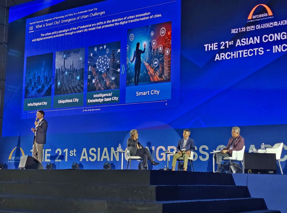 잠시 후 이상림 건축사, 박연수 박사, 이정훈 교수가 태국 사회자의 진행으로 스마트시티를 주제로 한 발표와 토론을 이어갔다. 먼저 이상림 건축사가 능숙한 영어로 스마트시티의 역사적 배경과 우리나라 현황을 설명했다. 이어 송도 스마트시티를 초창기부터 기획하고 오늘까지 발전시켜 온 장본인이라 할 수 있는 박연수 박사가 역시 영어로 발표해 청중의 큰 관심을 끌었다.