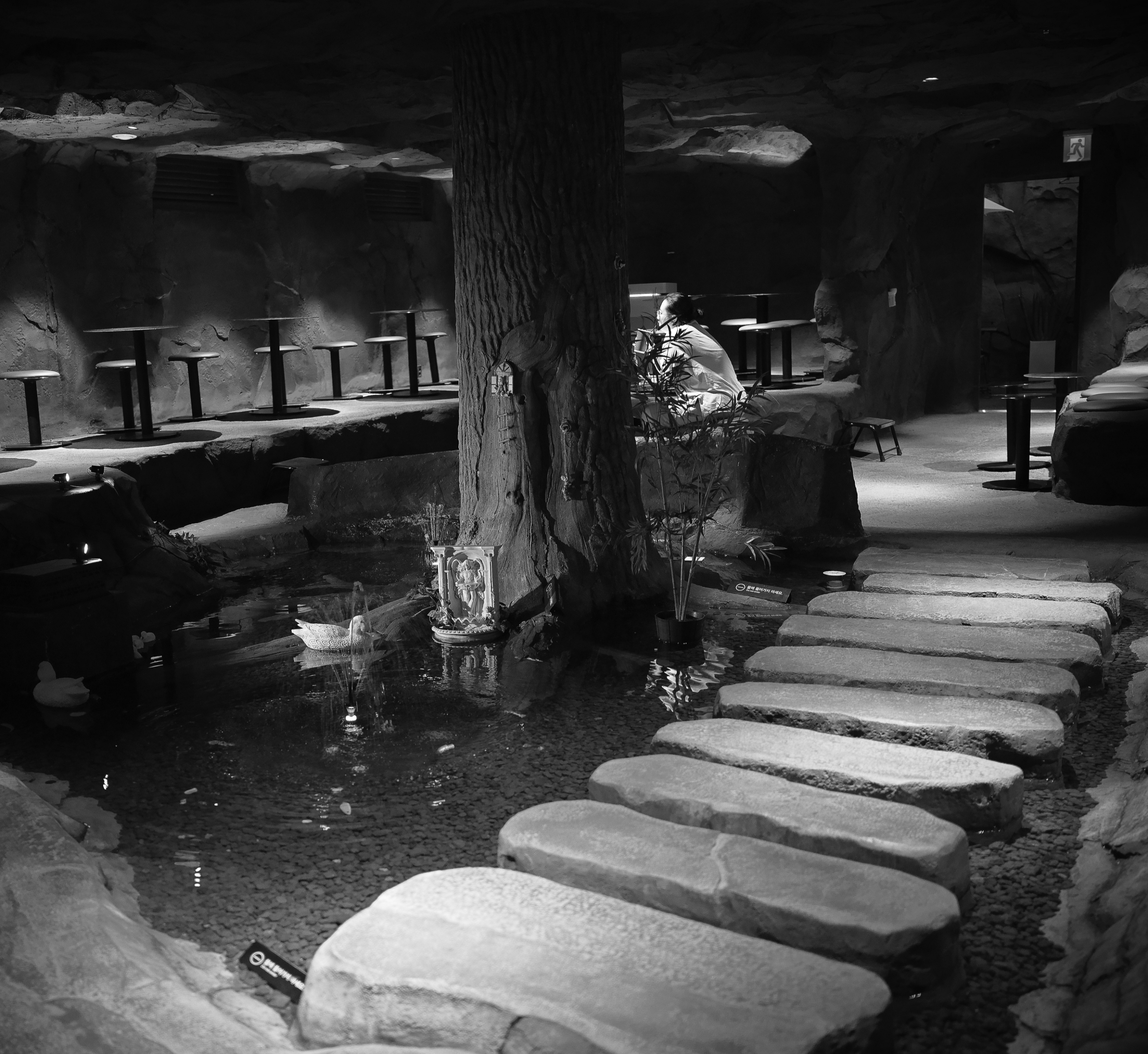 인천 영종도의 베이커리 카페 ‘메이드림(MADE林)’은 120여 년 역사를 지닌 왕산교회를 리모델링해 새로운 문화 공간으로 탈바꿈한 사례다. 외관은 벽돌 종탑과 아치형 스테인드글라스를 그대로 유지해 과거 교회의 정체성을 드러내면서도, 조경과 야외 마당을 더해 폐쇄적 예배당을 열린 커뮤니티 공간으로 확장했다. 지하 1층은 암벽 질감과 나무 기둥, 물길과 징검다리가 어우러져 마치 자연 동굴에 들어선 듯한 체험을 제공한다. 은은한 어둠과 물소리는 방문객을 차분히 몰입하게 하여 명상적 공간으로 기능한다.