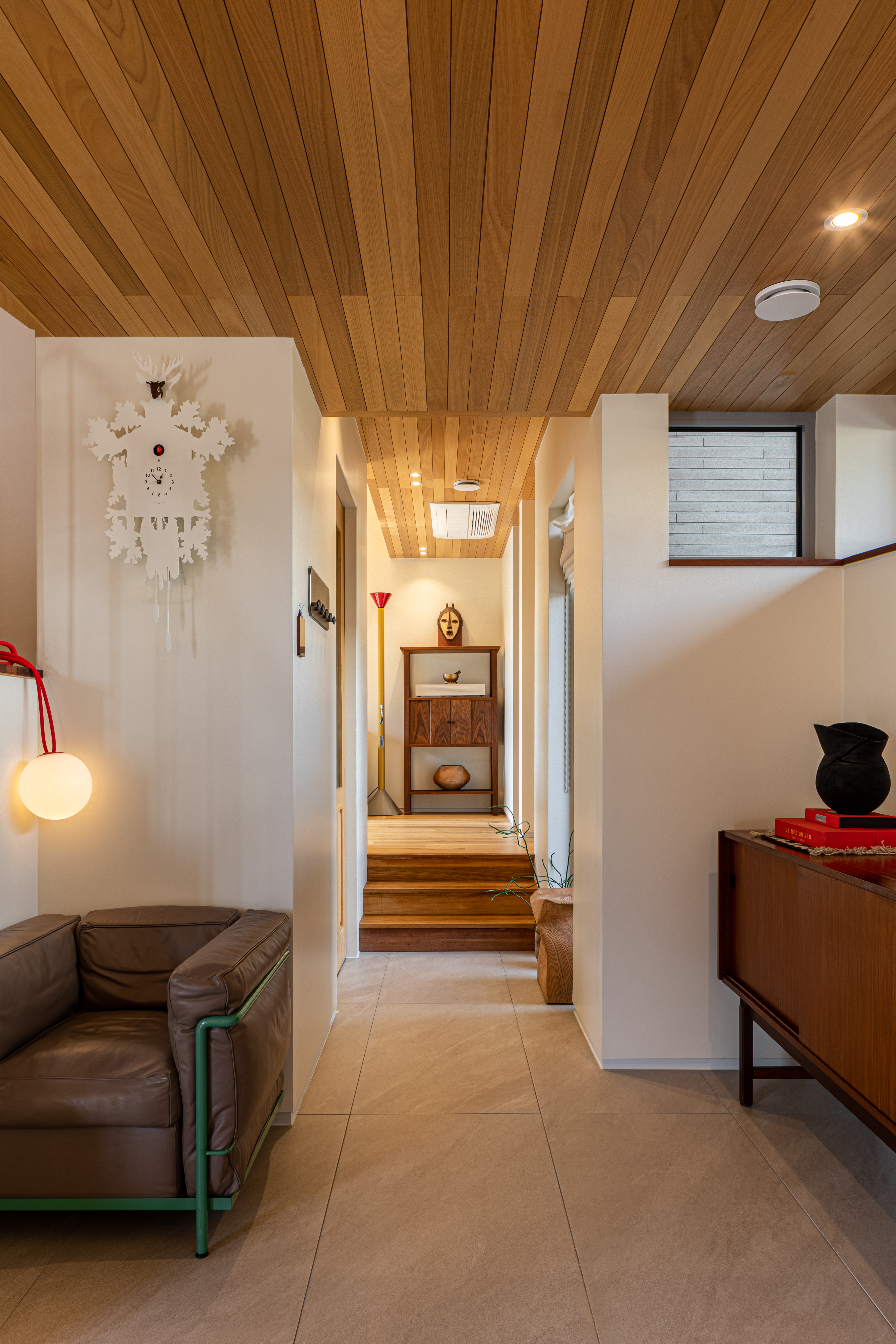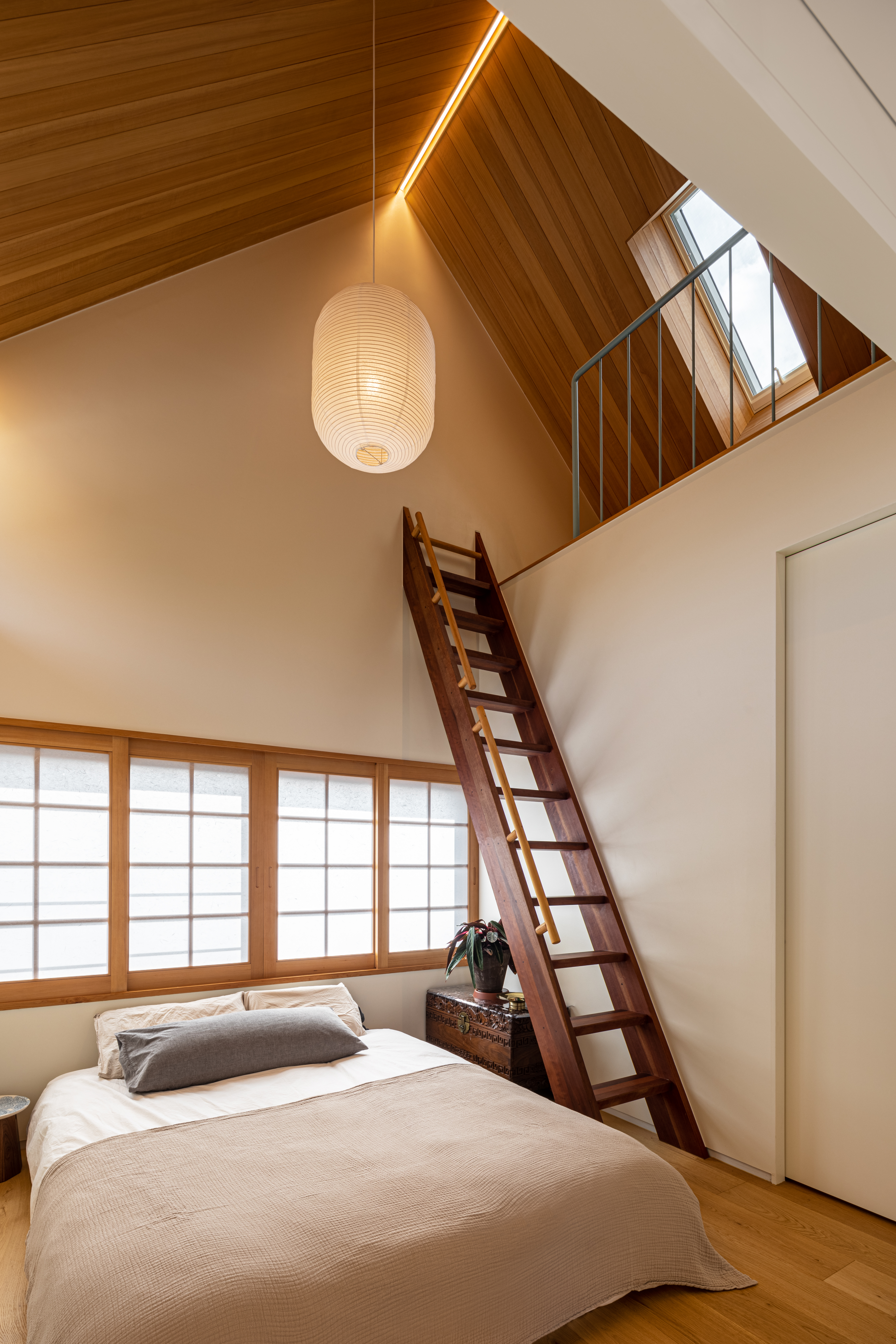 For interior and exterior finishes, a palette of natural woods such as merbau, yellow cedar, and western hemlock was selectively applied to suit each spatial program. This material approach offers guests a tactile and aesthetic experience rarely found in conventional homes. Over time, the wood will naturally age and accumulate architectural history through patina.