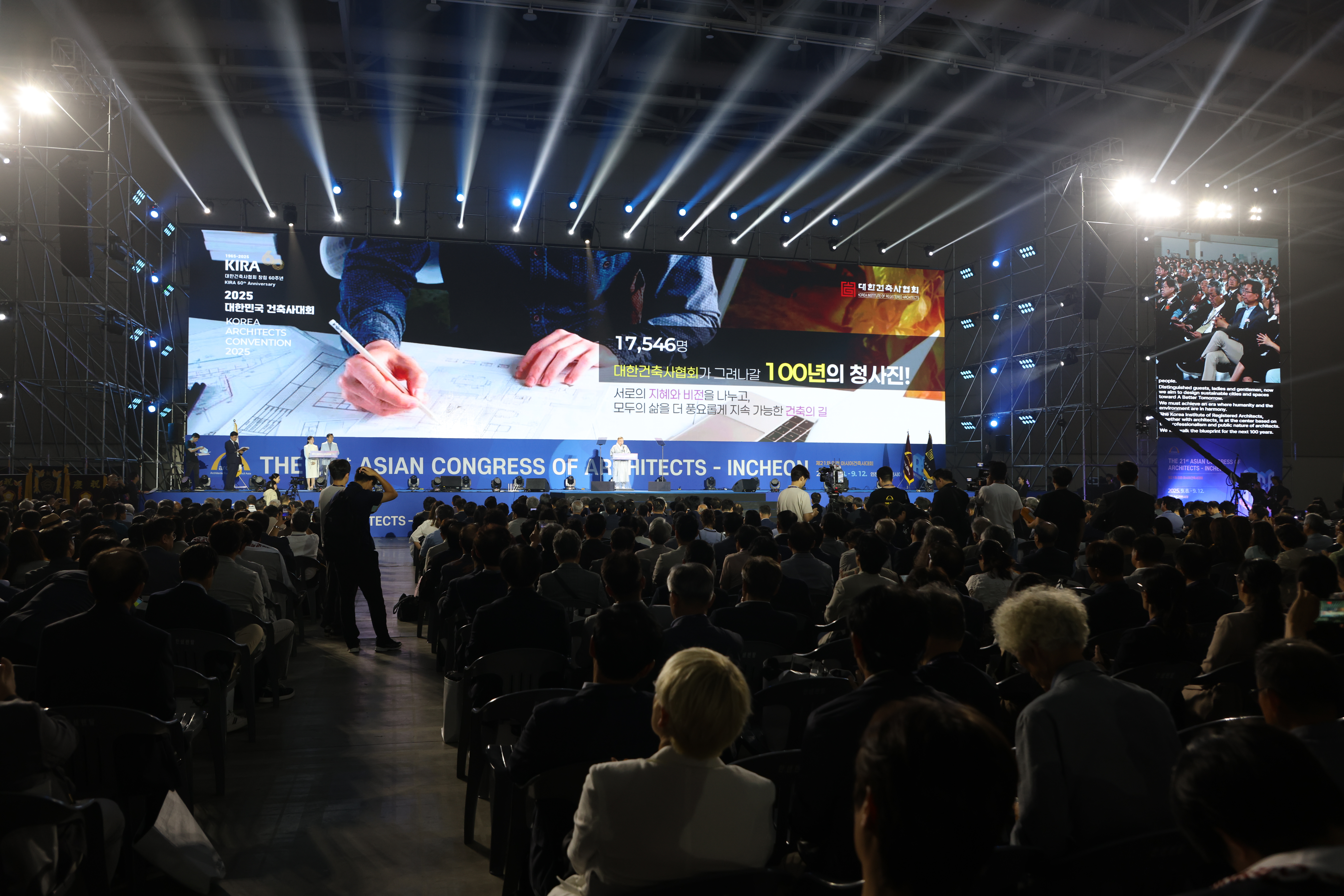 제21차 인천 아시아건축사대회가 9월 8일부터 12일까지 송도컨벤시아에서 5일간 성대히 개최됐습니다. 개막식에는 건축사 회원 8,000여 명과 아시아 건축사 500여 명, 학생과 미등록 건축사 등 약 1만여 명이 참석해 성황을 이뤘습니다.