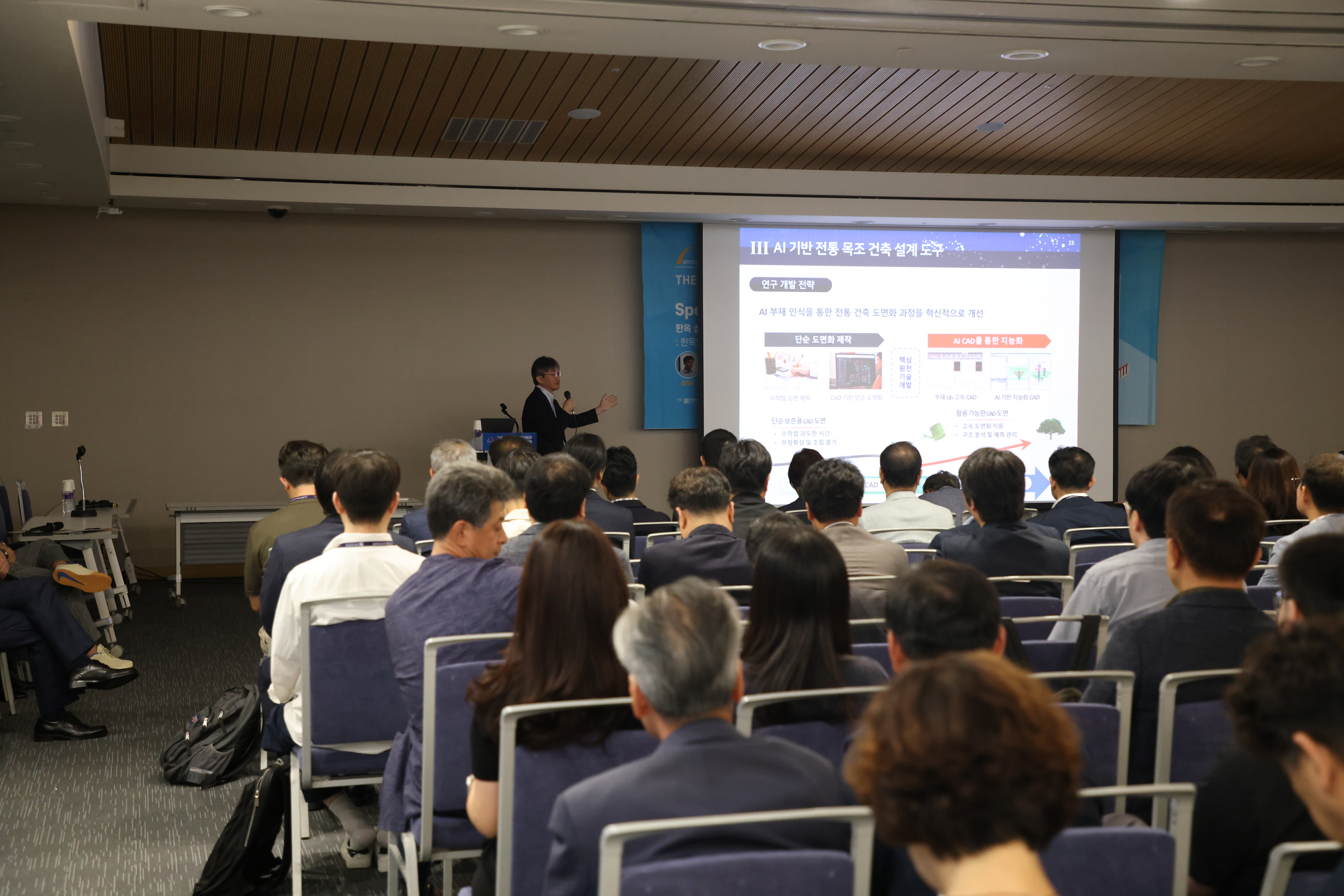 제21차 인천 아시아건축사대회에서 김석순 건축사, 이승재 연구원, 류성룡 고려대 교수가 ‘Heritage에서 AI 건축으로: 한옥의 미래’를 주제로 전문교육을 진행했다.