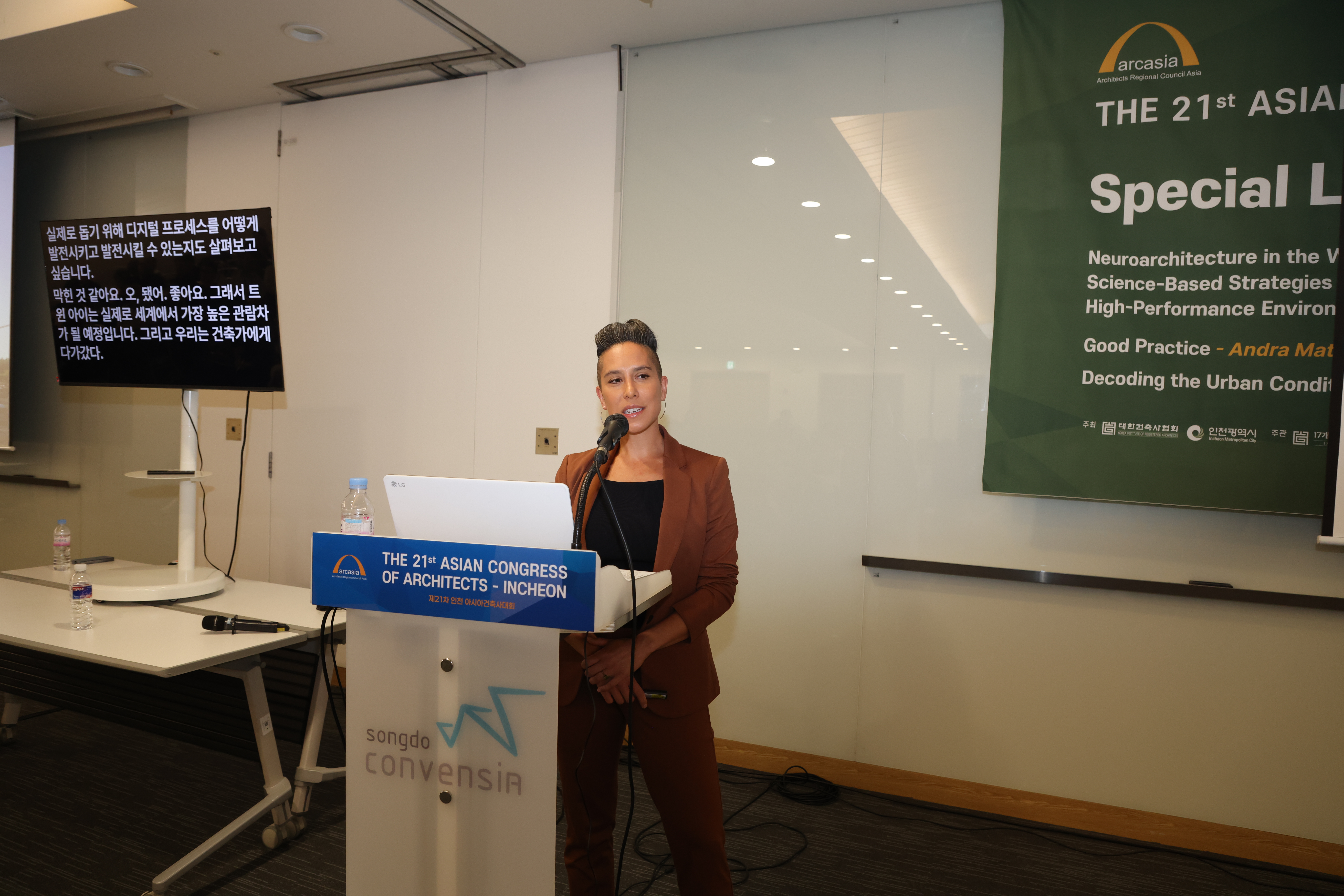 제21차 인천 아시아건축사대회에서 안드라 마틴이 ‘선함의 건축’을 주제로 특별강연을 진행하고 있다.제21차 인천 아시아건축사대회에서 안드라 마틴이 ‘선함의 건축’을 주제로 특별강연을 진행하고 있다.