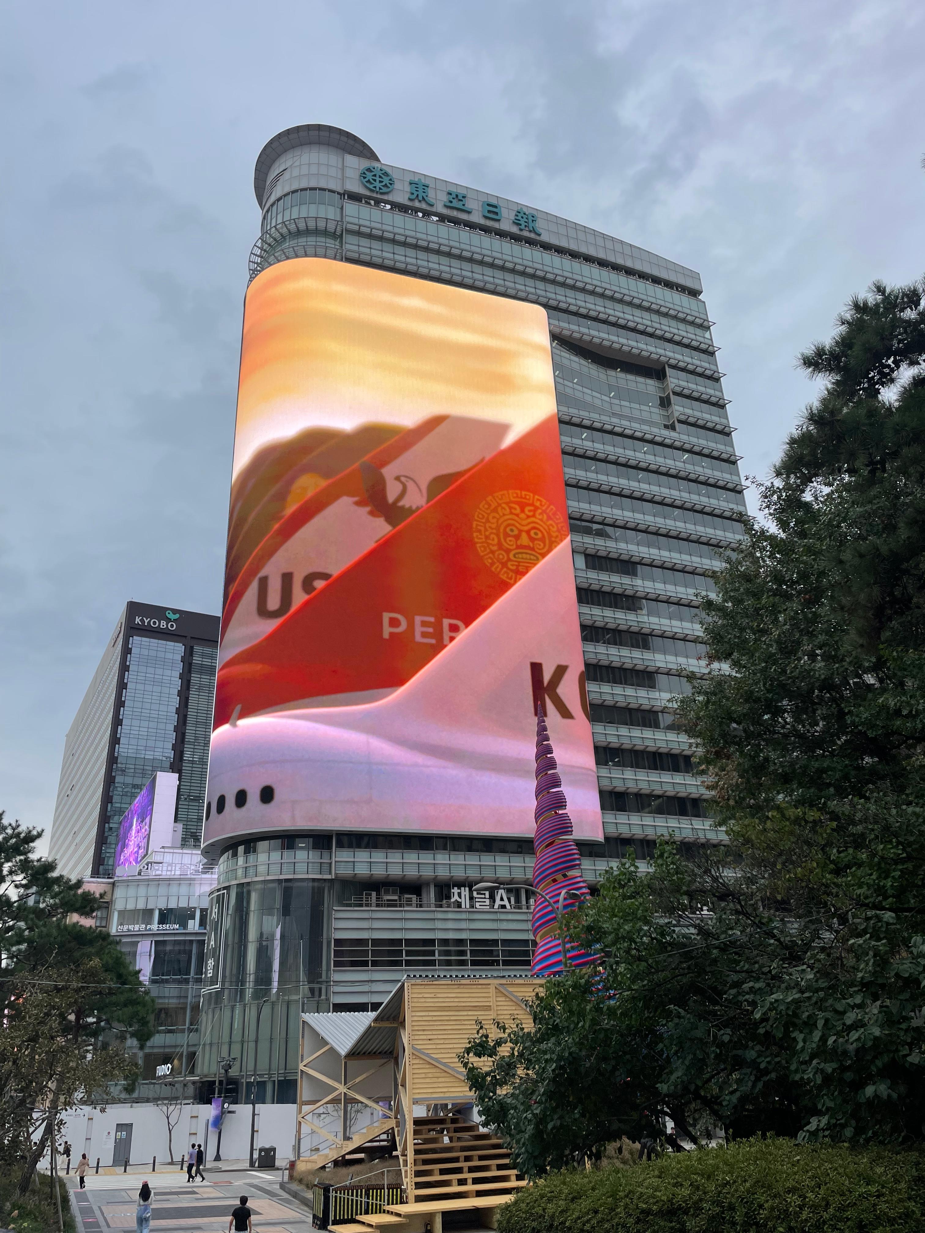 지난 10월 동아미디어센터(동아일보 사옥)에 가로 50미터, 세로 60미터로 국내 최대 크기를 자랑하는 초대형 미디어 월이 설치되었다.<사진 1> 이름이 ‘룩스(LUUX)’다. 올해 4월에는 룩스 맞은편에 있는 코리아나 호텔 벽에 가로 20미터, 세로 59미터의 초대형 미디어 월이 이미 설치되어 있었다.<사진 2> 코리아나 호텔은 조선일보가 소유하고 운영하는 곳이다. 그러니 우리나라의 양대 보수 신문이 모두 한국 역사와 행정, 문화의 중심지인 광화문 일대에 초대형 광고판을 설치하고 운영하게 된 것이다. 지난 9월에는 이 둘 못지않은 규모로 KT 사옥 미디어 월의 오픈식이 열렸다. 이 건물에는 가로 47미터, 세로 21미터짜리 전광판이 무려 두 개나 있다.<사진 3> 두 개를 합치면 코리아나 호텔의 전광판보다 크고 동아미디어센터보다 조금 작은 규모다. 이로써 대한민국역사박물관이 지난 2022년에 ‘광화시대’라는 이름의 미디어 월을 설치한 뒤 올해에만 3개가 추가돼 광화문 광장엘 가면 사방이 번쩍거리는 전광판으로 휘황찬란하다.