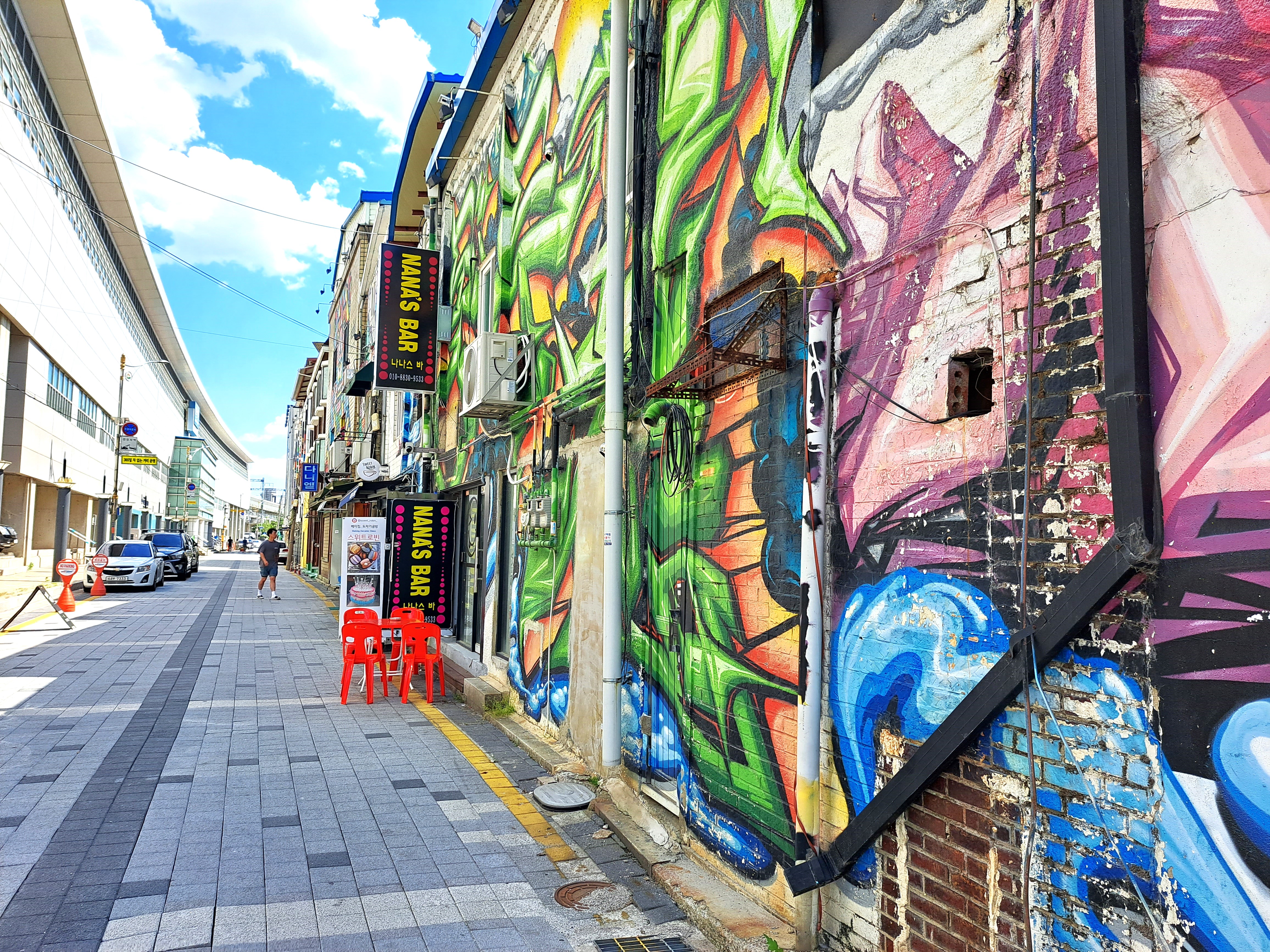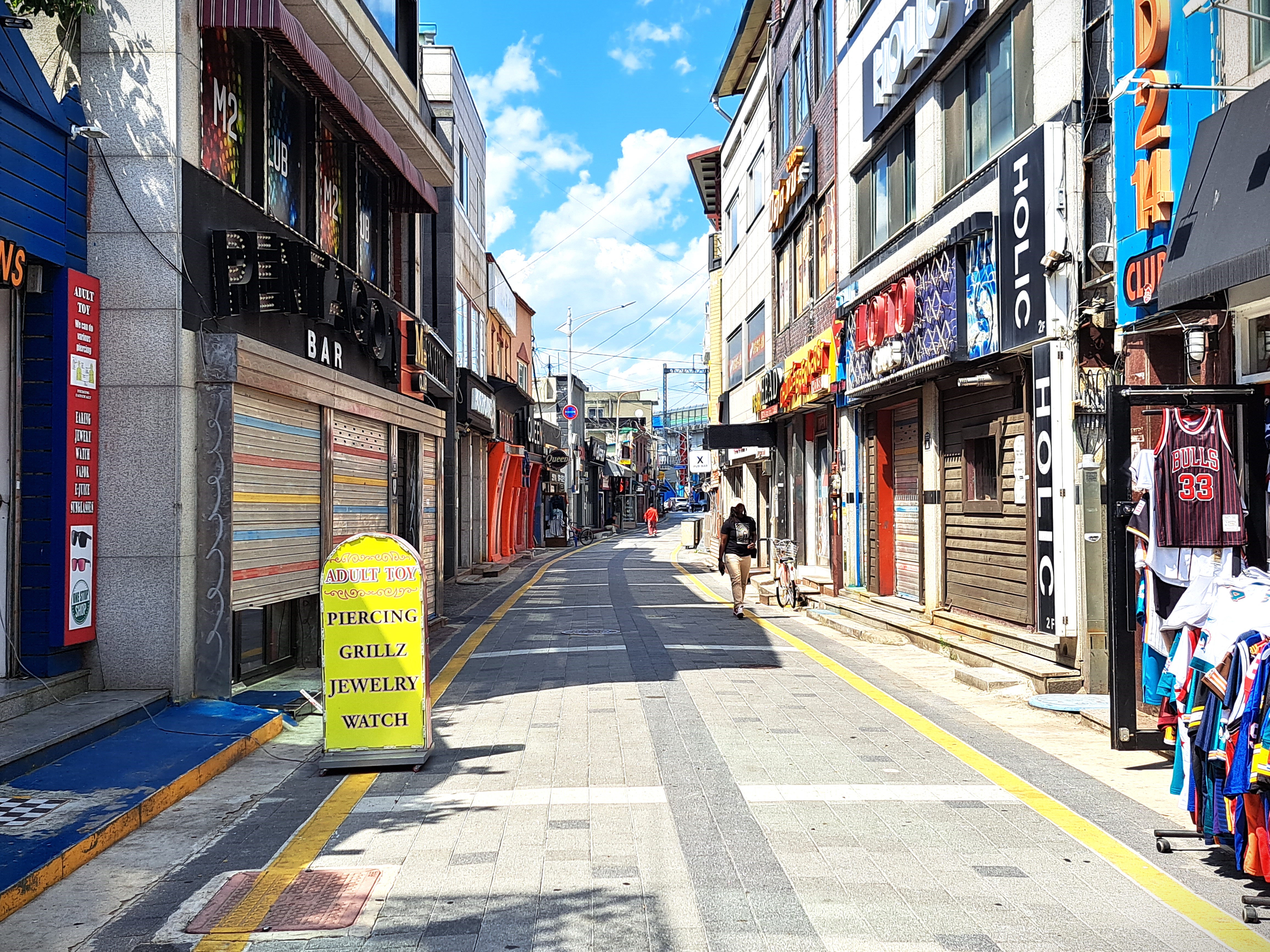 공간이 무척 밝다. 흡사 미국의 어느 소도시에 선 느낌이다. 이곳을 ‘리틀 시카고’라 부르던 때가 있었다는 말을 실감한다. 한 시절 휘황한 네온사인으로 밤을 빛냈던 영어 일색의 형형색색 간판에 시선이 머문다. 간판에서 이 공간이 살아낸 시간을 능히 읽어낼 수 있겠다. 외국인관광특구로 지정된 정식명칭 ‘Camp Bosan’의 첫인상이다. 경원선 보산역과 잇닿아 있다. 환한 표정 뒤에 감춰진 속살이 엿보이는 것 또한 어쩔 수 없다. 내보이기 싫은 기지촌이었고, 기생적 소비공간이었다. 지금은 많이 변했다지만 말이다. 기지촌을 사전적으로 ‘외국군 기지 주변에 형성된 촌락’이라 풀이한다. 즉 외국군 주둔지 주변에서, 부대에 필요한 재화와 용역은 물론 인력까지 제공하는 배후지란 의미다.