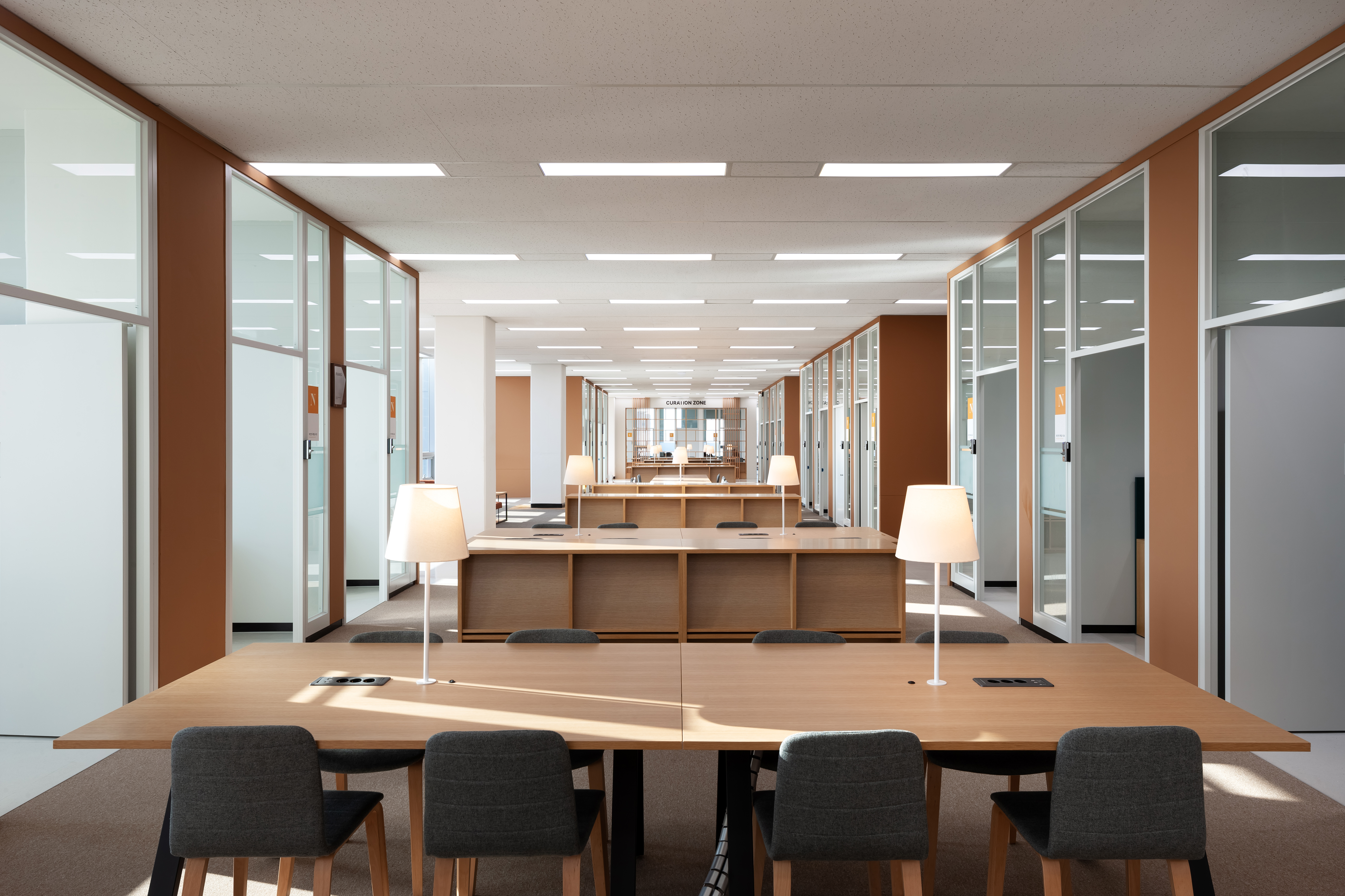 The extension makes strategic use of the existing library’s piloti space and the stepped plaza to create a layered spatial structure where horizontal and vertical flows intersect. A central convergence hall connects directly to the original library, with stepped seating that accommodates exhibitions, lectures, performances, and other campus events. Floors are visually and spatially connected, transforming individual rooms into multi-layered environments where movement, sightlines, thought, and experience intersect. As a result, the library becomes an open plaza within the university—an active setting for reflection, meeting, and creative exchange.