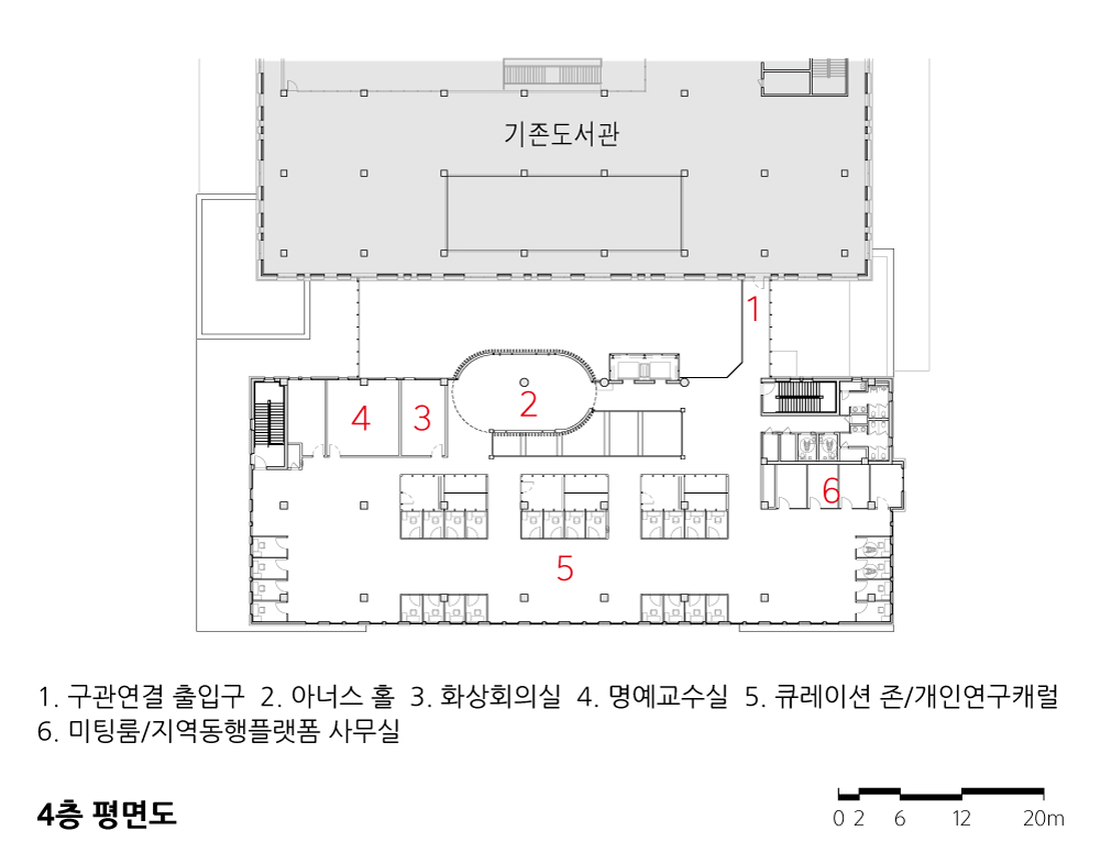 기존 도서관 ‘필로티 하부’와 ‘계단 광장’을 활용한 입체적 공간 구성