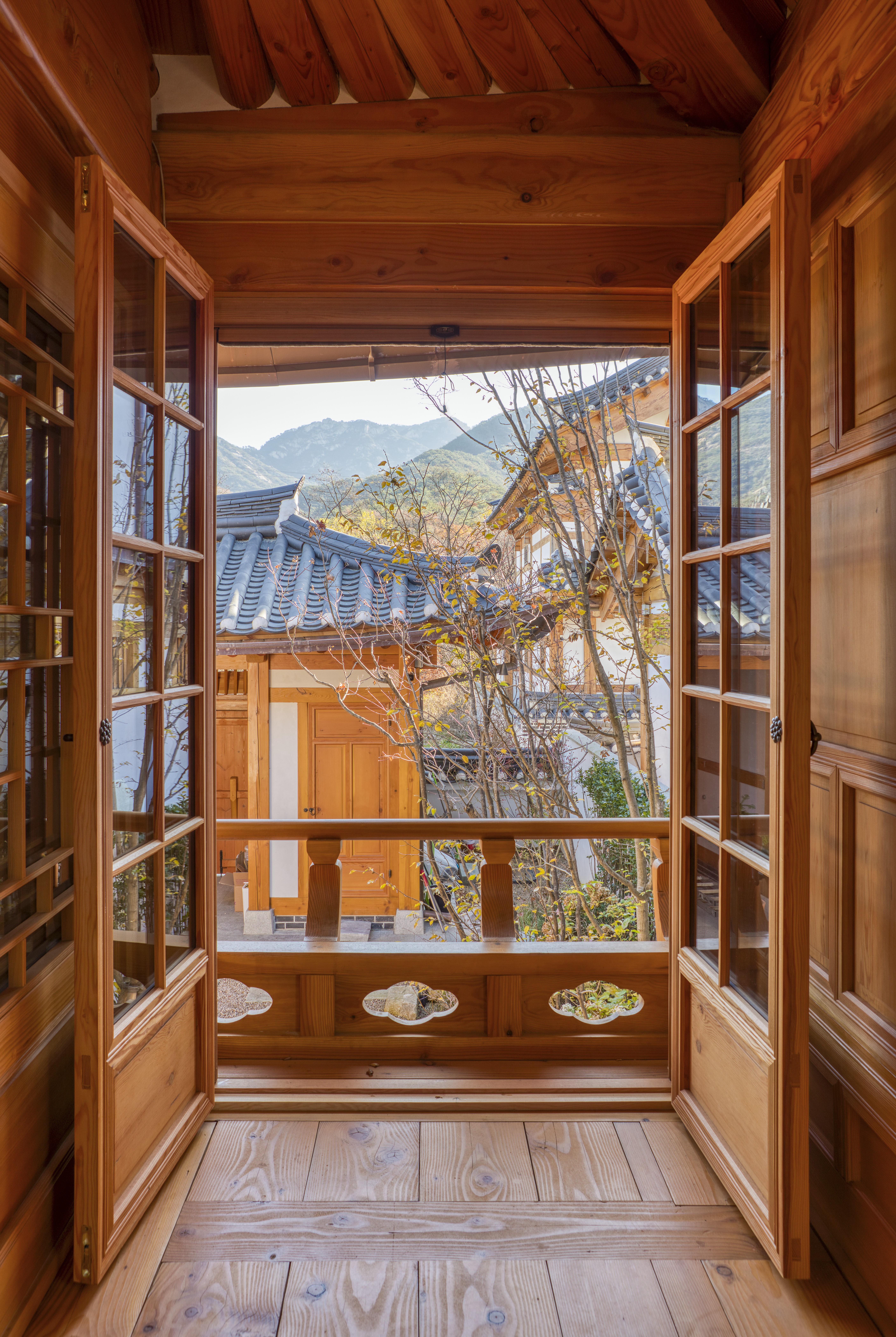The residence, named SeoHeeJae, reflects values and impressions significant to the homeowner. According to an interview conducted when the project was selected as “Seoul Hanok of the Year” in 2022, the homeowner identified the numaru as the most cherished space in the house. From the elevated numaru connected to the main room, one can look eastward toward the ridges of Bukhansan, suggesting a clear rationale for the name SeoHeeJae. The numaru is oriented to capture the morning light, and its position—on the west side of a north–south alley with the main room located inward beyond the courtyard—supports this relationship to the early sun.
