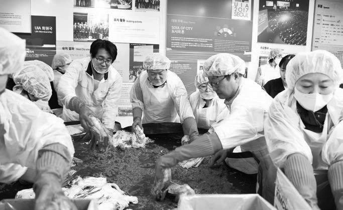 서울특별시건축사회는 11월 25일 건축사회관 1층에서 ‘건축사와 함께하는 이웃사랑 김장김치 나눔’ 행사를 진행했다. 서울시건축사회 임원과 사회공헌위원회 위원, 자원봉사에 나선 건축사 회원들이 정성껏 담근 김장김치 636 상자를 서울지역 11개 자치구의 어려운 이웃에 전달했다.