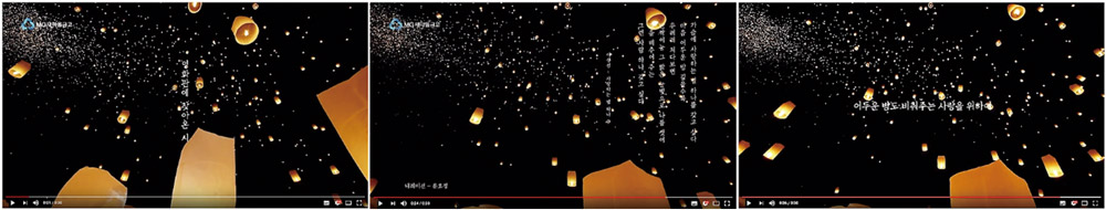 MG새마을금고는 아예 시를 활용한 영상을 만들어 2016년 여름부터 온에어 시키고 있다. 계 절 별로 ‘영화관에 찾아온 시’라는 극장 광고 캠페인을 진행하고 있는데, 이는 상업적 메시지 를 전달하는 영상 광고와는 별개로 제작되어 친근한 브랜드로 고객에게 다가가는 역할을 하 고 있다. 화려함보다 차분함을 앞세운 이 광고들은 어두운 영화관의 분위기와 잘 어울려 계절 의 감성을 한껏 자극한다. 작년 가을편을 찾아보니 이성선 시인의 ‘사랑하는 별 하나’의 일부 가 유명 연예인의 목소리로 낭송되었다.