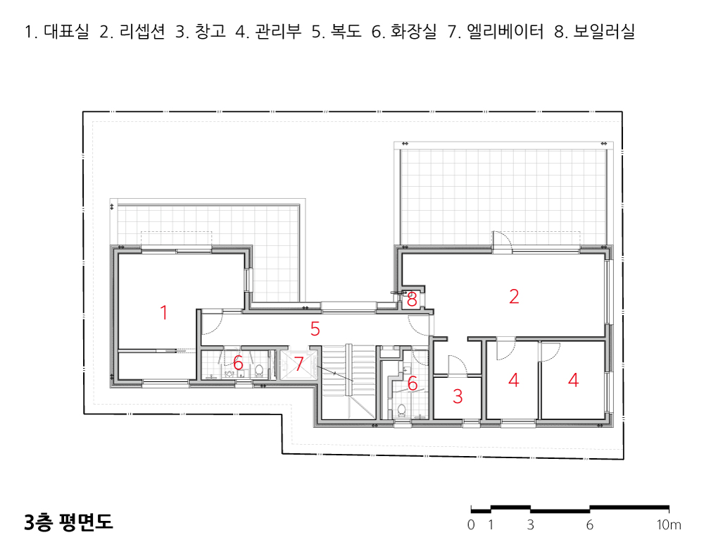 대지는 서울시 강남구 논현동의 한 경사지이다. 기존의 단독주택을 철거하고 지하 2개 층과 지상 3개 층의 사옥을 짓는 프로젝트를 진행하였다.