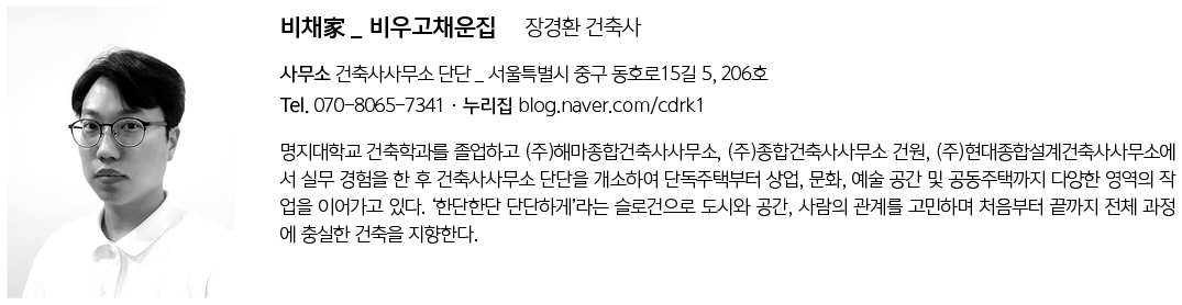 비채가에서의 채움은 현재진행형으로 거주하는 가족들의 여유롭고 풍요로운 삶의 공간으로 채워지길 기대한다.