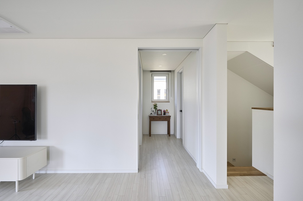 Bichaega Architect | Jang Kyunghwan_DANDAN Architects Client | Lim Okgue Supervisor | KUMHWA Architects Construction | Needs House Location | Neunggok-dong, Siheung-si, Gyeonggi-do Program | Single house Site area | 232.00㎡ Building area | 113.70㎡ Gross floor area | 199.90㎡ Building to land ratio | 49.01% Floor area ratio | 86.16% Building scope | 2F Structure | RC Exterior finishing | Tile Interior finishing | Wall-paper, Wood floor Design period | Apr. 2024 - Sep. 2024 Construction period | Oct. 2024 - Mar. 2025 Photograph | Choi Jinbo Structural engineer | HK ENC Mechanical engineer | Dongsin & Space Electrical·Fire engineer | Kunchang Engineering Consultant |