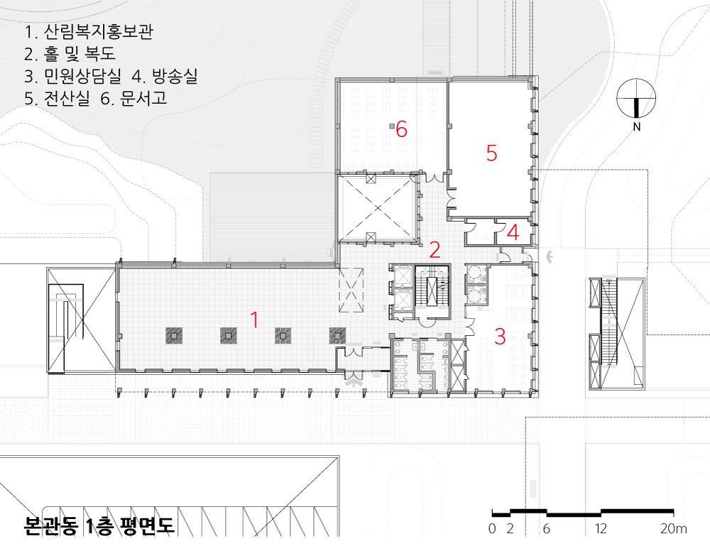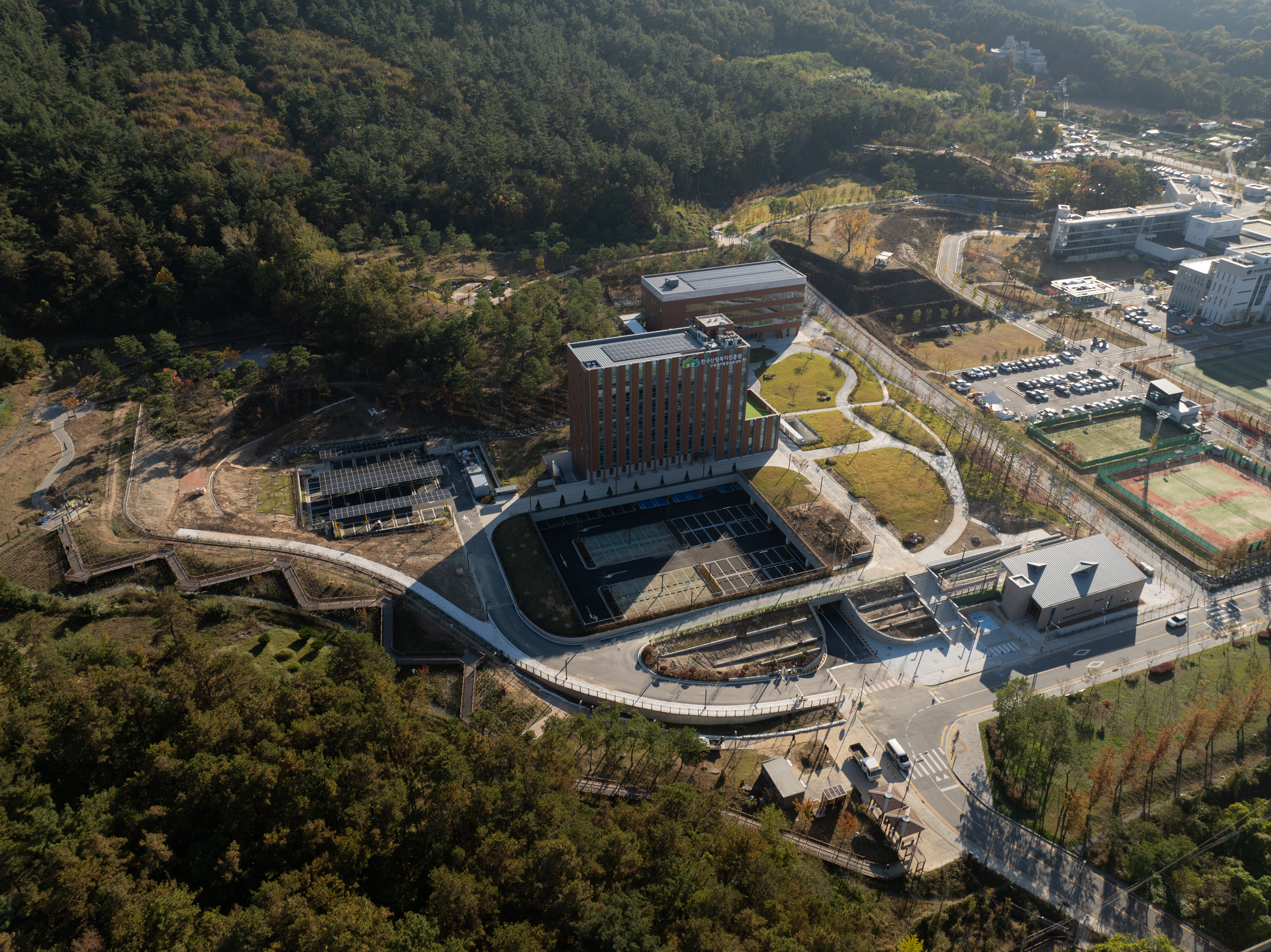 The Forest Welfare Education Center operates as a resilient system that evolves in response to the social and environmental changes of our time, functioning in a sustainable manner. The site borders a newly developed urban park at the foothills of Mt. Gubong.