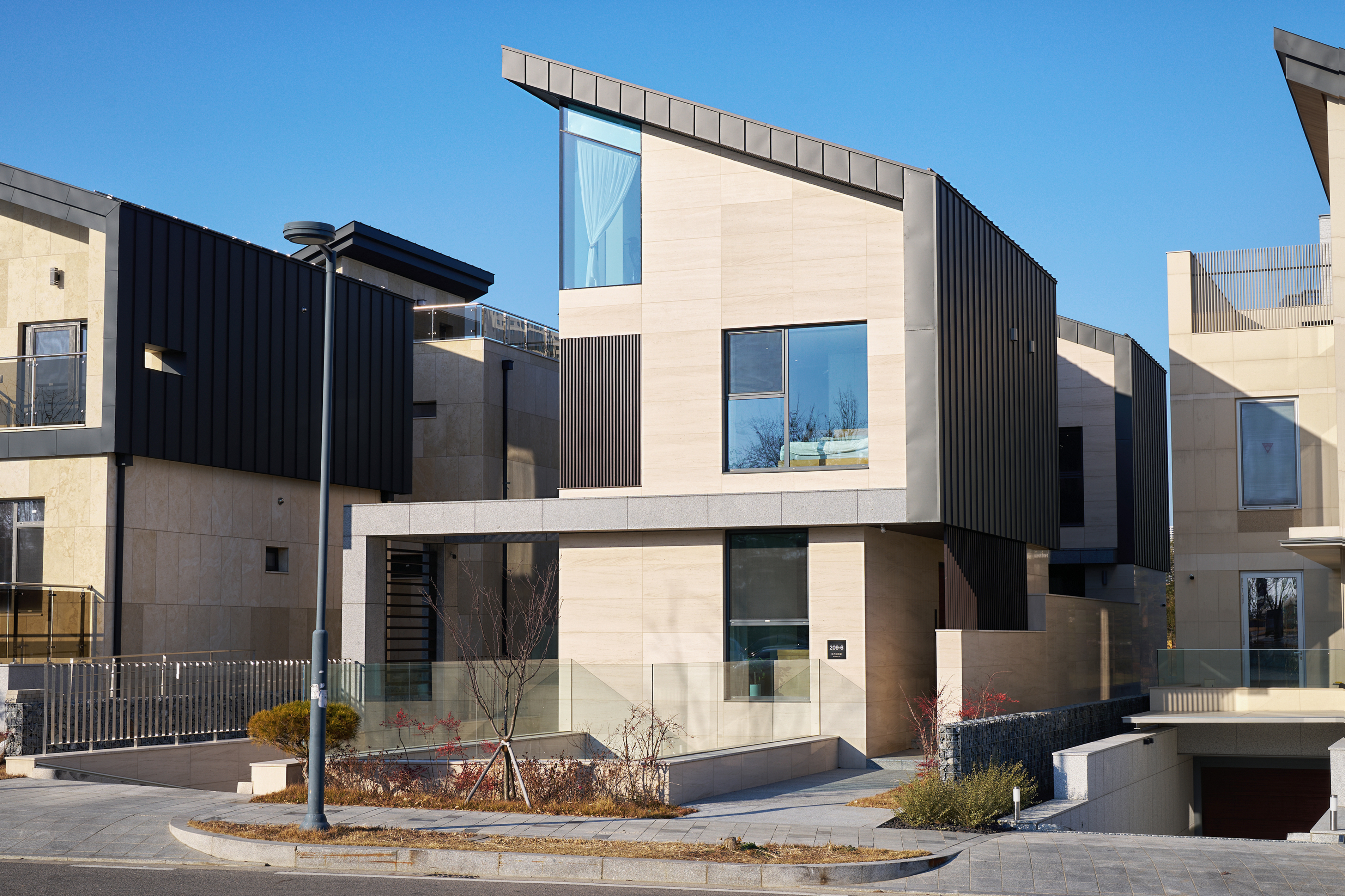 단지 정체성 확립을 위한 경관상세계획으로 지붕형태/색채 및 재료에 대한 지침 내에서 평면의 공간감을 자연스럽게 표현했다. 보편적 주거의 상징인 박공지붕으로 ‘집’으로의 원형적 형태를 추구하였다.