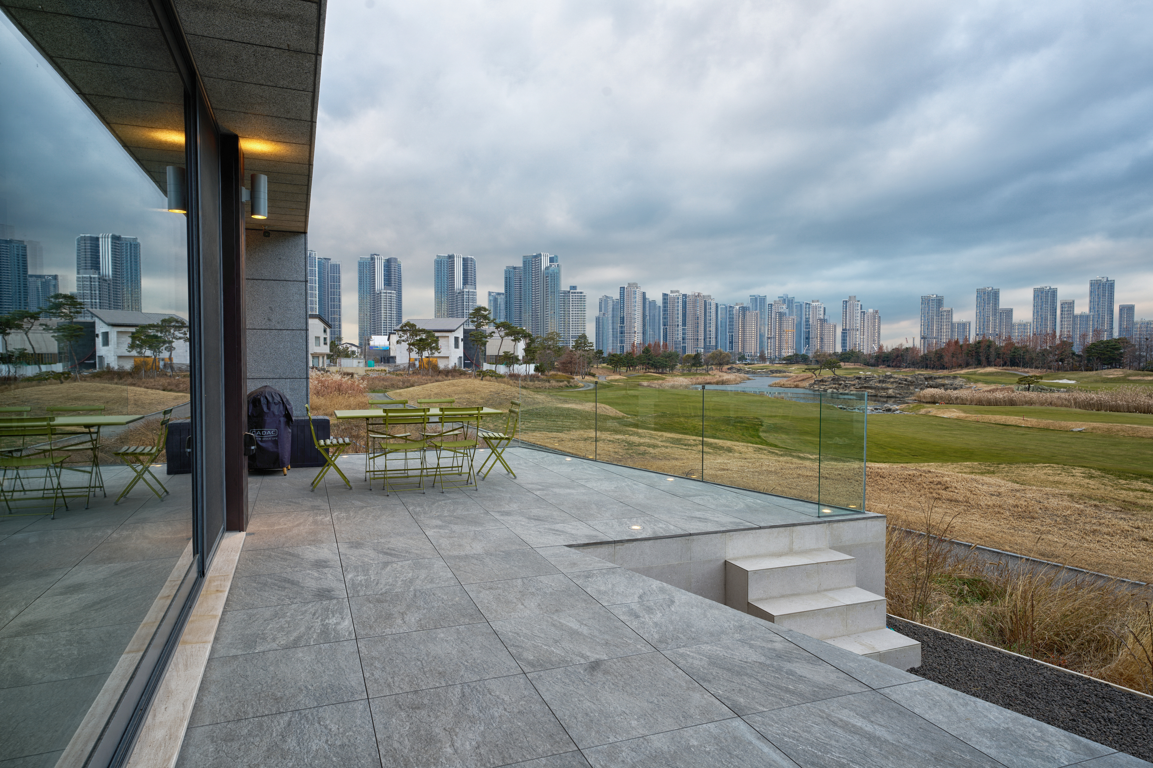 대지의 남측은 8미터 도로, 북측은 페어웨이로 시야가 개방되어 있으며, 동, 서측은 인접세대로 이웃 간의 프라이버시를 고려해야 했으며, 단독주택으로서 가질 수 있는 이야기를 더하자 했다.