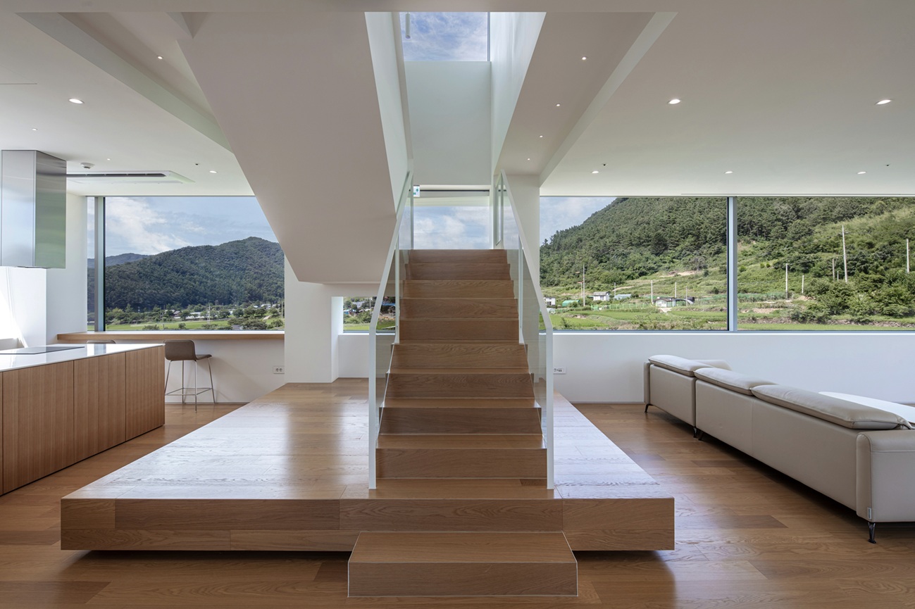 단순한 ‘형태미’ 속에서 지형의 변화에 따라, 시시각각 변하는 그림자와 백색 매스의 중첩은 단조로움을 탈피하고, 풍부한 건축적 표정을 완성하였다.