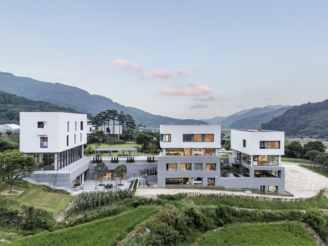 Established in 2013 at the foothills of Mt. Geumgye in Chugye-ri, Gongju, Hyangyakwon has reached a new phase after ten years with the addition of the Hyangyakwon Annex. The key challenge of this project was not simply to increase floor area, but to create a multifunctional space that could support staff workshops and family-oriented leisure activities, while maintaining a strong connection with the existing Hyangyakwon. To achieve this, we proposed a design in which the original building and the annex function together as a single integrated complex.