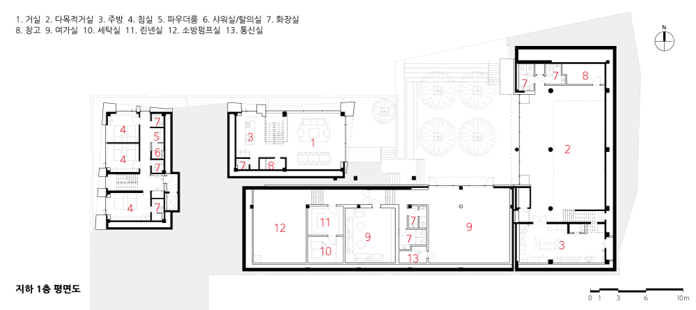 All buildings were staggered along the site’s contours to minimize visual interference between them. This arrangement was intended to ensure that every room could fully engage with the natural scenery of Mt. Geumgye.