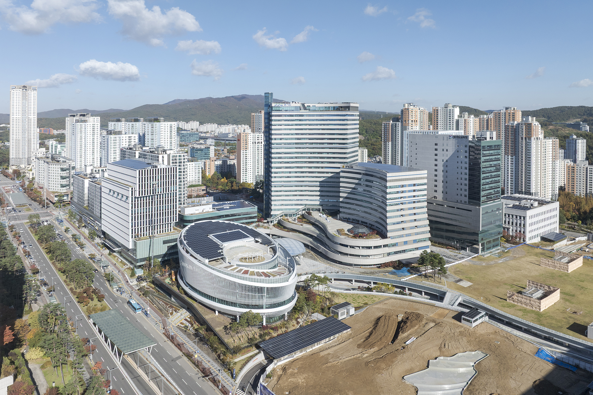 ‘지식의 흐름·순환’ 살린 유기적 공간 구성 경기융합타운 마스터플랜 지향점 담아 알루미늄 외벽루버로 햇빛 컨트롤 BIM 활용한 비정형 이중 외피 설계