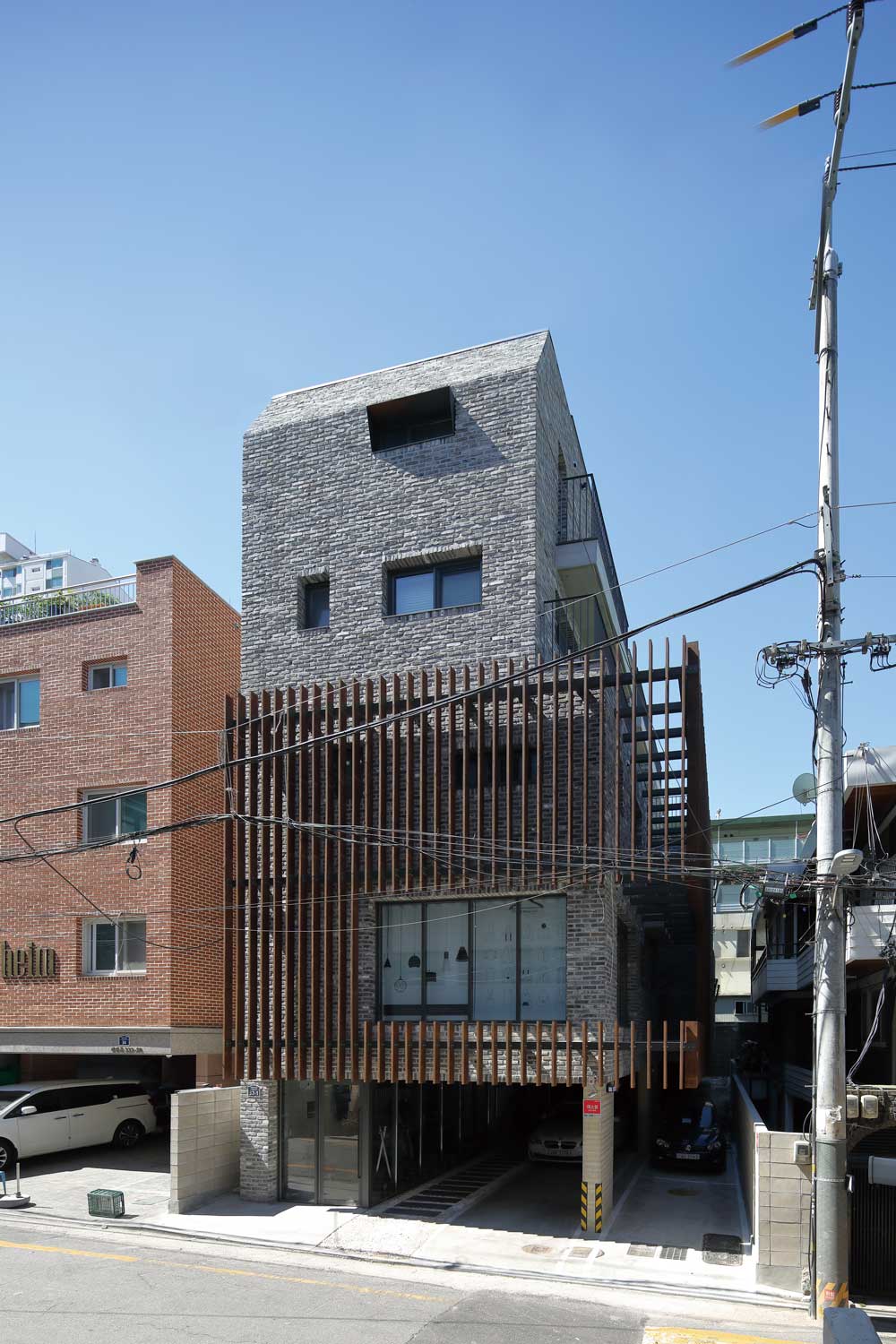 신당동 테라스하우스 율담 설계자 ┃ 김경희 KIRA ┃ (주)건축사사무소 모도건축 건축주 | 정준희, 김한민 감리자 | 김경희 _ (주)건축사사무소 모도건축 시공사 | (주)시티건축 설계팀 | 이응락, 이솔뫼 대지위치 | 서울특별시 중구 다산로18길 32-1 주요용도 | 근린생활시설, 다가구주택 대지면적 | 173.00㎡ 건축면적 | 102.93㎡ 연면적 | 344.93㎡ 건폐율 | 59.50% 용적률 | 199.38% 규모 | 지상 5층 구조 | 철근콘크리트조 외부마감재 | 치장벽돌쌓기, 목재루버, 노출콘크리트(미송소폭판) 내부마감재 | 노출콘크리트(유로폼), 석고보드+페인트 설계기간 | 2015. 12 ~ 2016. 04 공사기간 | 2016. 07 ~ 2017. 02 사진 | 김재경 전문기술협력 구조분야 : (주)파워구조 기술사사무소 기계설비분야 : (주)하나설비설계사무소 전기분야 : (주)하나설비설계사무소 소방분야 : (주)하나설비설계사무소 |