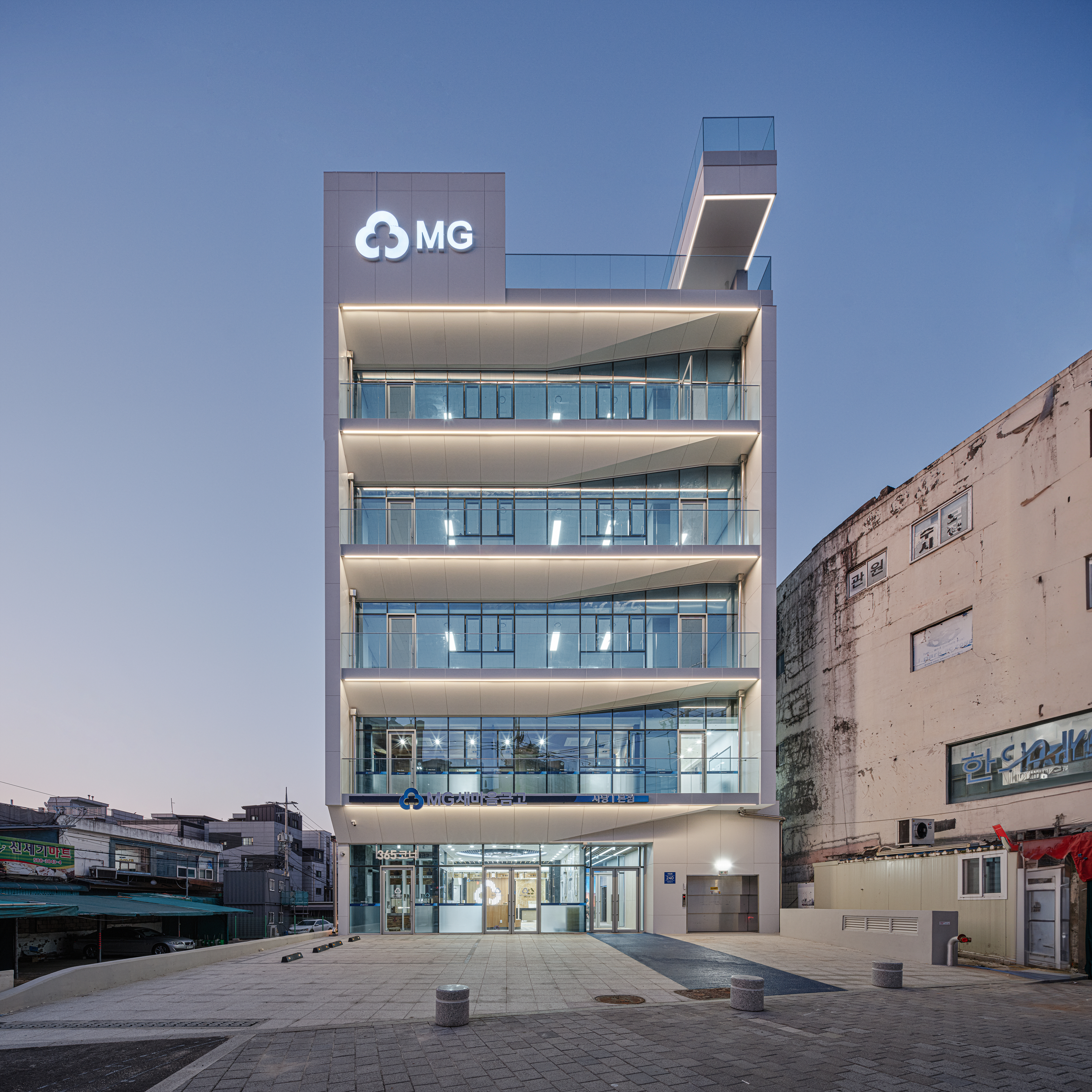 Sadang MG Community Credit Cooperative Architect | Kim Kyungnam_BORN ARCHITECTS Client | Sadang MG Community Credit Cooperative Supervisor | Kim Kyungnam / Cho Sunghyun Construction | JAESEONG Construction Co., Ltd. Project team | Cho Sunghyun / Park Jiho / Kim Geun-ju / Kim Yubin Design intention realization | Born Architecture & Engineers Co., Ltd. Location | Sadang-dong, Dongjak-gu, Seoul Program | Business Facilities / Neighborhood Living Facilities Site area | 587.20㎡ Building area | 294.00㎡ Gross floor area | 2,257.39㎡ Building to land ratio | 49.52% Floor area ratio | 245.06% Building scope | B2 - 6F Structure | RC Exterior finishing | Ceramic Panel, Low-E Insulating Glass Unit(Clear) Interior finishing | Eco-friendly water-based paint, Exposed concrete plastering Design period | Jun. 2021 - Jan. 2022 Construction period | Dec. 2021 - Sep. 2023 Photograph | Lee Hanul Structural engineer | Taekyung Structure Engineering Co., Ltd. Mechanical·Electrical·Fire engineer | Taeyoung EMC Co., Ltd. |