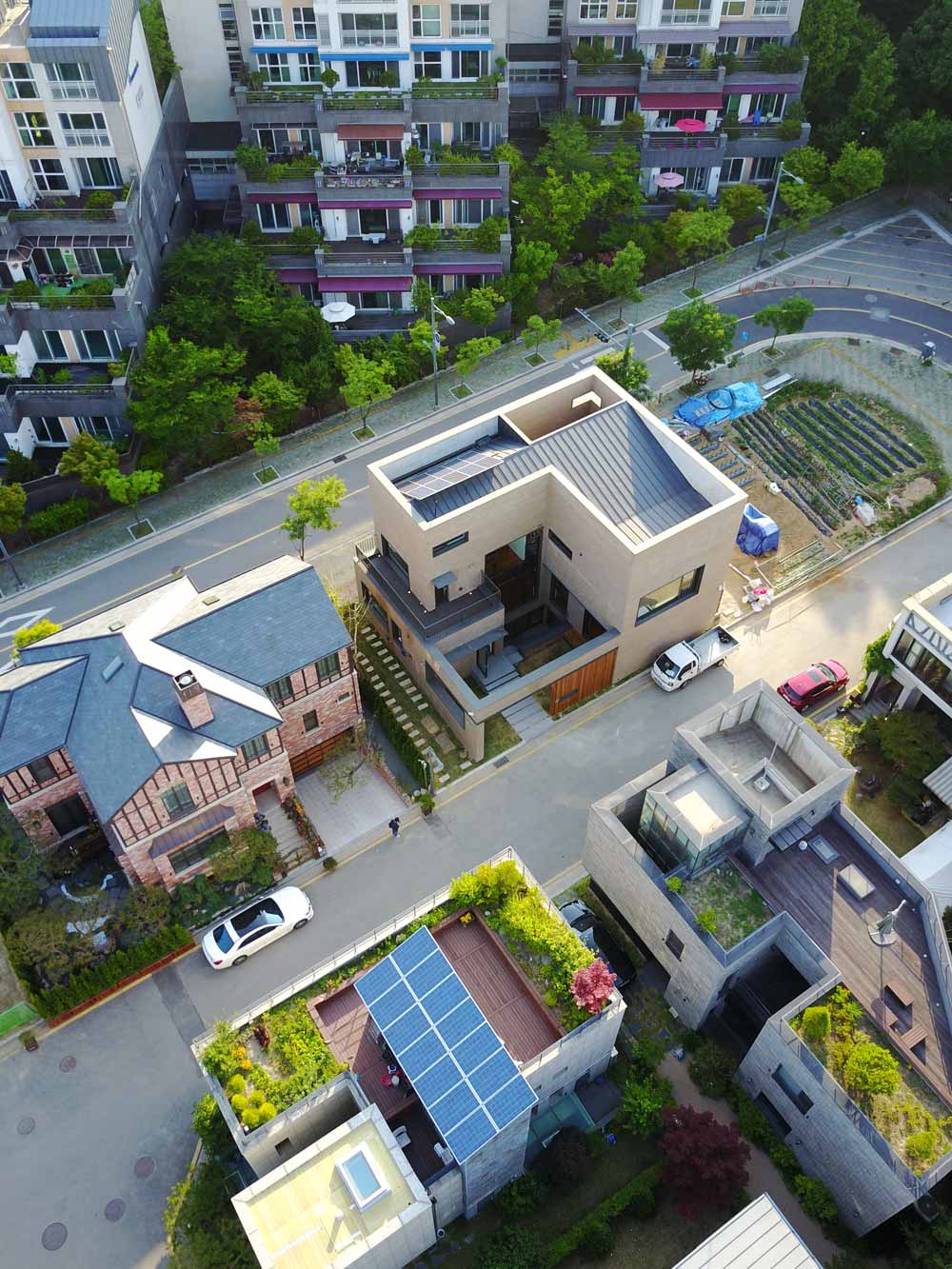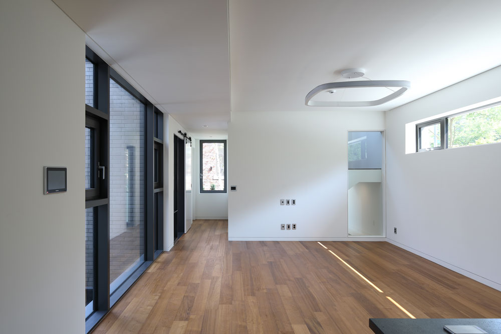 The client from Danajae has a desire to build a ‘forever’ house that will suit his needs as he enters his later years. The client requested a modern housing design, I designed the shape and materials of the exterior to be as simple as possible by focusing on the proverb ‘An iron hand in a velvet glove’. The exterior spaces such as the sunken, yard and terrace were given the sense of expanding space by connecting with the inside and made environmentally-friendly by introducing light and wind for the client who preferred the feeling of bright and large spaces. The indoor and outdoor stairways, which are fully exposed to light, serve places for connecting and experiencing the space inside and outside, thereby providing the richness of light and space in Danajae.