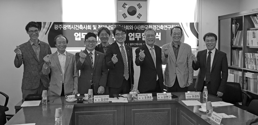 전라남도건축사회와 광주광역시건축사회가 9월 13일 광주건축사회관에서 사단법인 한국환경건축연 구원과 각각 업무협약을 맺었다. 협약은 그린리모델링 연구·사업, 노인주택 연구·개발, 표준형 조립 식주택 가이드라인 기준 연구를 공동으로 수행한다는 내용 등을 담고 있다.