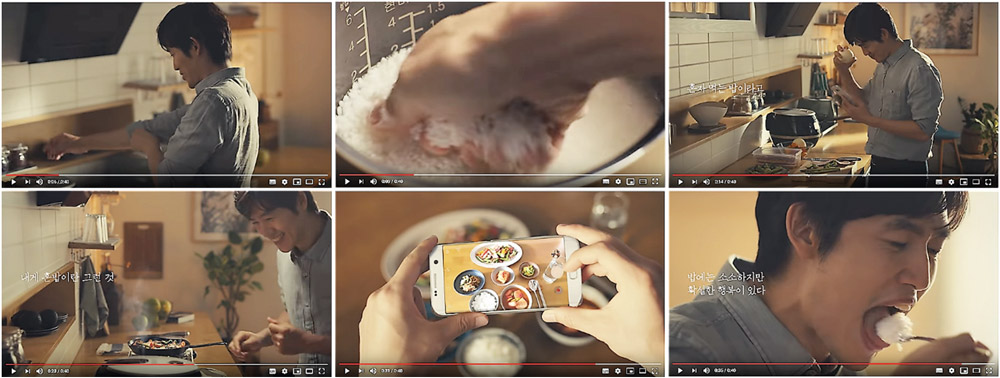 농림축산식품부의 ‘밥이 답이다’ 캠페인은 여기서 끝이 아니다. 밥 먹으라는 얘기를 하려고 제 대로 작정을 했는지, 혼자 밥을 먹는 혼밥족을 겨냥한 동영상도 제작되었다. 영상 속에서 혼자 밥을 먹는 남자는 ‘혼을 다해서 차린 밥’이 혼밥이라는 해석을 내세우며 근사한 밥상을 스스로 를 위해서 차린다. 인터넷으로 요리법을 찾아서 요리를 하고 예쁘게 담아 먹기 전에 사진을 찍 는 것도 잊지 않는다.