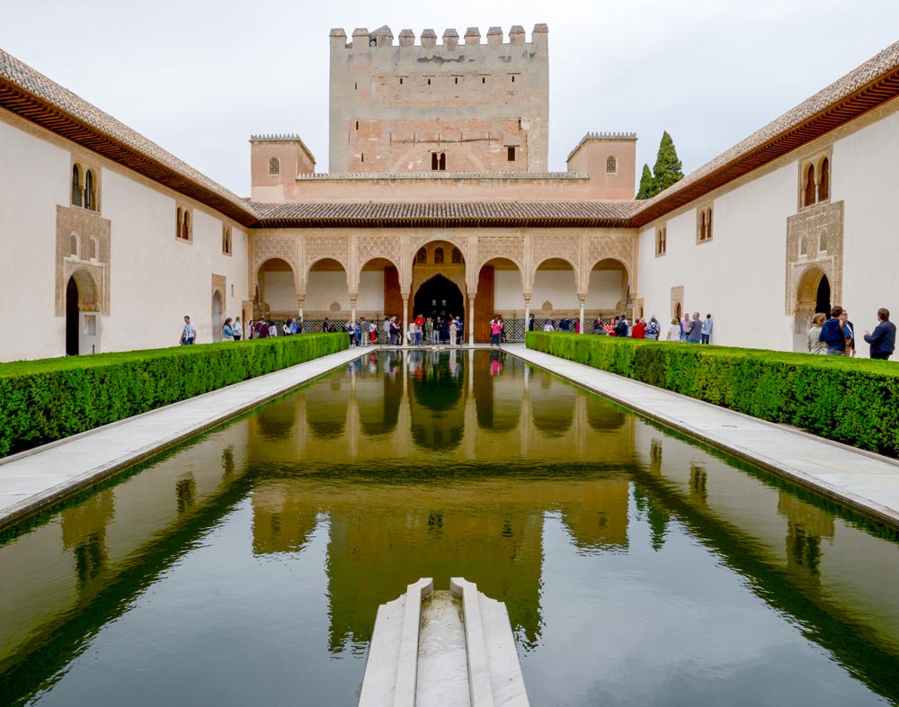 lhambra 궁전은 스페인은 물론 전 세계적으로 유명한 유네스코 문화유산이다. 8세기부터 스페인을 지배해 온 이슬람의 마지막 왕조인 나스르 시대(1331-1491)에 알 칼리브 왕이 축조하여 유세프 왕이 완성했다고 한다. 프란치스코 타레가(1852∼1909)는 근대 기타의 가능성을 재발견한 인물이다. 그라나다의 알람브라 궁전으로부 터 받은 영감을 기타 곡으로 작곡해 슬프고 애절한 선율의 기타 연주곡 ‘알 함브르의 추억’을 탄생시켰다. 백문이 불여일견 이라는 어휘가 딱 들어 맞는 역사의 장소, 많은 건축사들은 인류가 만든 가장 아름다운 예술 건 축물로 동양의 타지마할과 서양의 ‘알함브라 궁전’을 꼽는다. 둘 다 이슬람 건축물이다.