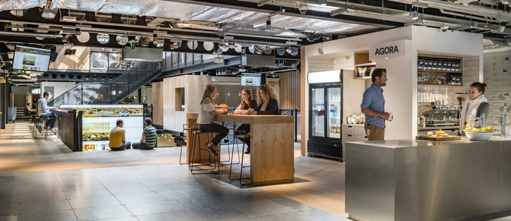 아고라의 사이사이에 열린 주방공간은 아침과 점심을 직원들에게 제공하며, 먹는 공간과 회의공간, 그리고 작업 공간의 경계를 허문다.