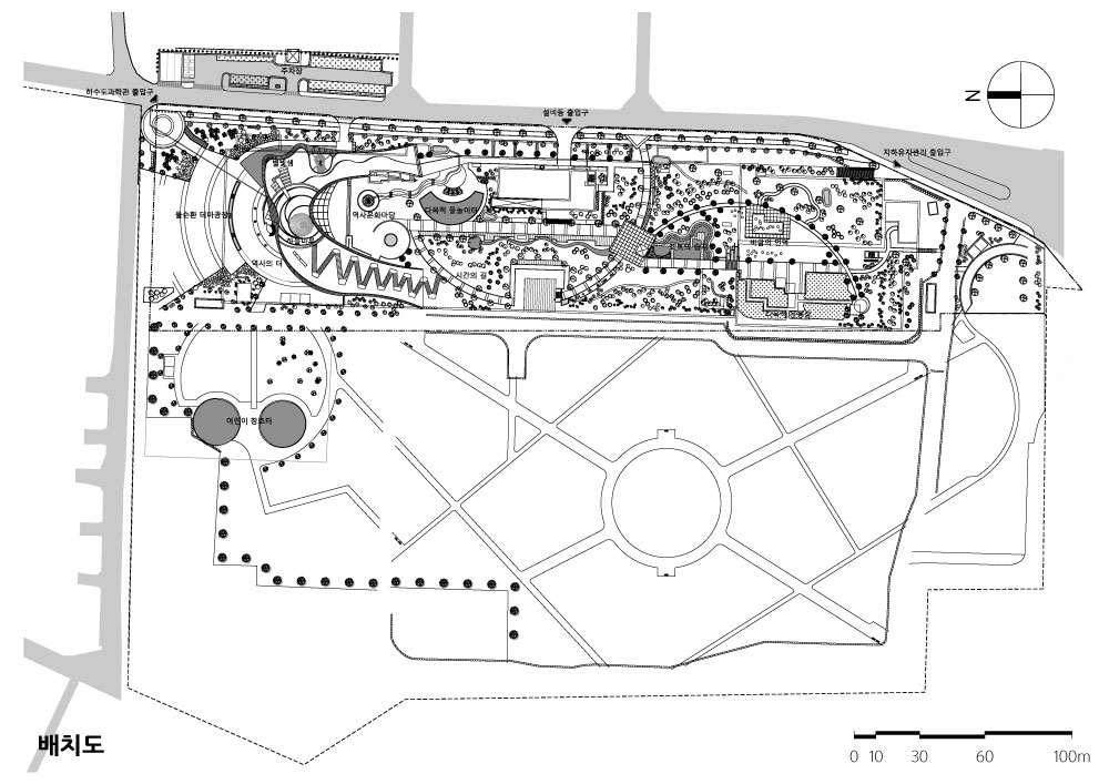 | 서울하수도과학관 설계자 ┃ 오채준 KIRA ┃ (주)이레드림 건축사사무소 건축주 서울시 중랑물재생센터 감리자 한국종합기술 시공사 GS건설(주) 대지위치 서울특별시 성동구 자동차시장3길 64 주요용도 문화 및 집회시설(과학관) 대지면적 790,640.00㎡ 건축면적 43,801.45㎡ (증축: 2,842.09㎡) 연면적 78,106.53㎡ (증축: 2,365.03㎡) 건폐율 5.54% 용적률 7.46% 규모 지하 1층, 지상 2층 구조 철근콘크리트조 외부마감재 노출콘크리트, THK0.7 징크판넬 평잇기 내부마감재 THK30 화강석 버너구이 / 설계기간 2008. 08 ~ 2010. 12 공사기간 2010. 12 ~ 2018. 01 사진 이종윤 구조·기계설비·전기·소방분야 (주)건화 |