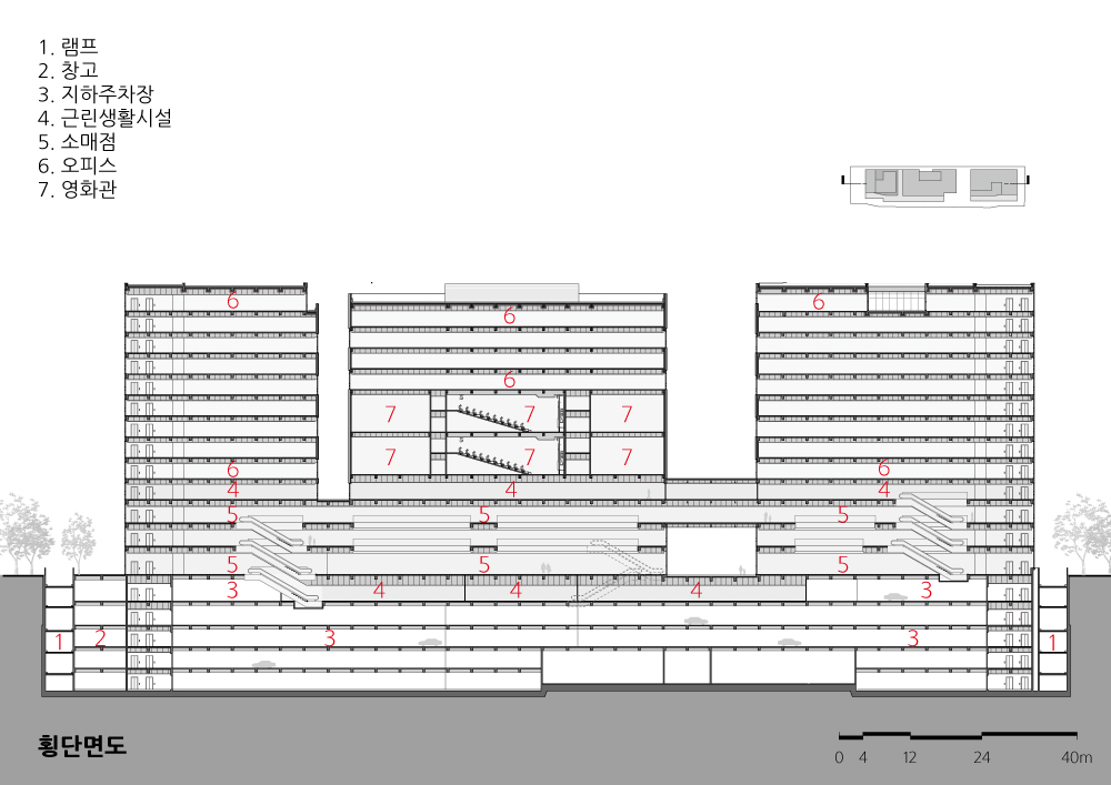 As each warp and weft are woven together to form a single fabric, various movement lines and facilities become URBAN FABRIC, and the elevation also has a quiet identity of Magok in a fabric pattern.