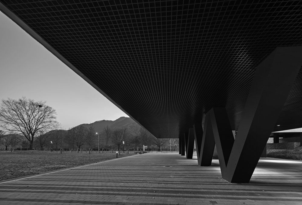 I applied the huge scale of Chungju Dam and the physical property of concrete itself, which is a component, to the design of the water culture exhibition hall. The parking lot and the park were separated using the level difference of the land, and the water culture exhibition hall was arranged as the medium for connecting.