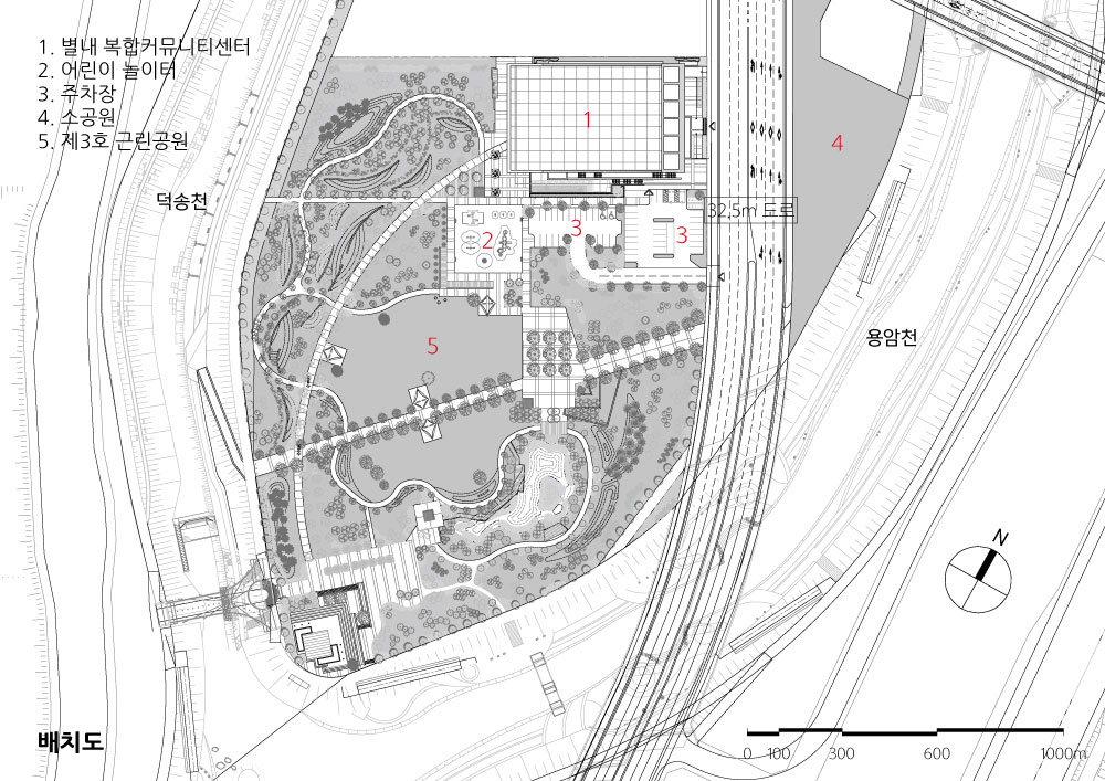 대지의 해석을 통한 매스의 설정과 주변환경에 순응하는 배치계획을 했다. 대지의 입지현황분 석에 따라 주요실과 매스 배치방향을 남동, 남서로 하여, 채광과 일조를 최대화하고, 도시축 상의 가로경관을 고려한 FACADE와 불암산을 배경으로 이루어진 대지환경과의 연계성을 고려한 조망계획을 했다.