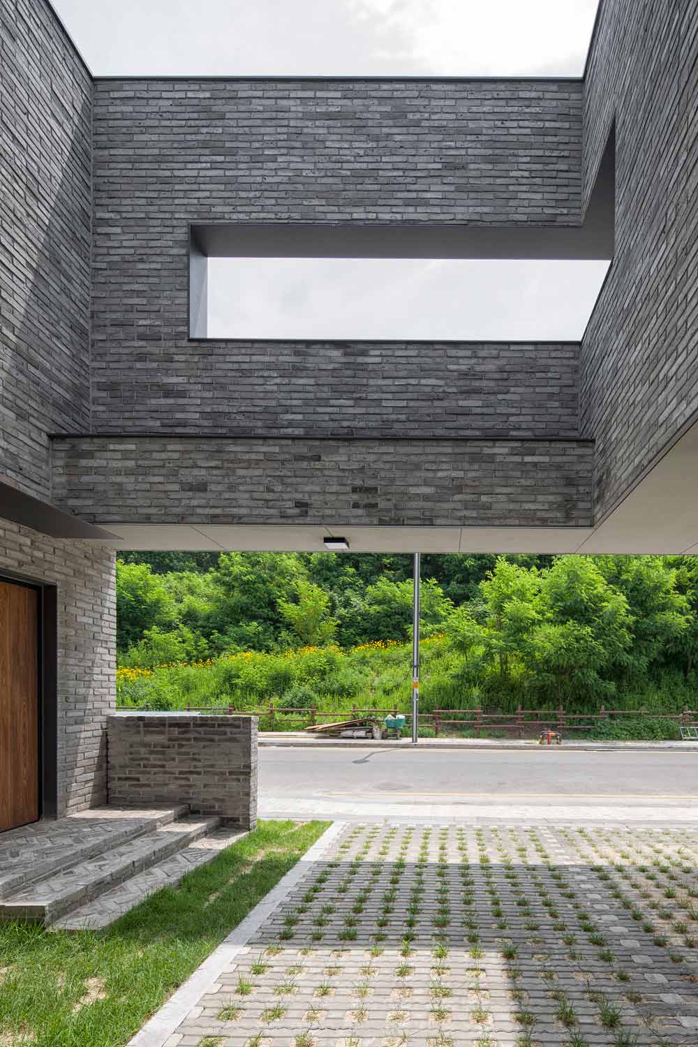 In order to take advantage of the eastern view and maximize the southern lightning we divided the structure at the north and south and deployed 工-typed connecting the center. It was designed so that there were two yards, which were divided into east and west in the ㅁtyped simple shape totally by setting up the 2nd floor free-standing wall along the land shape in the 工typed mass. As the masses that the centers were connected have a vertical connection stairs and finished with glass to be projected visually the 2 yards each other, it could add the depth of yards.