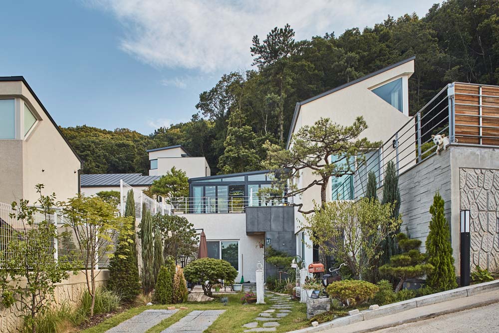 마을을 통과하는 바람길을 어느 집도 막지 않고, 다른 집의 전망과 햇살을 욕심 부리지 않으며 이 집은 방향을, 저 집은 길목을 기꺼이 양보하면서 포리스타 친환경빌리지를 이루었다.