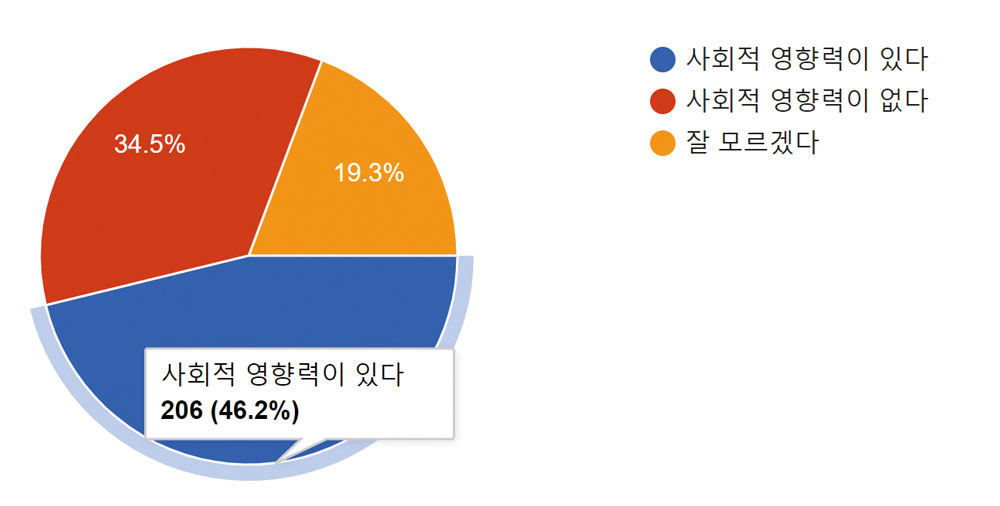7. 건축잡지가 전문분야의 저널로서 사회적 영향력이 있다고 생각하는지