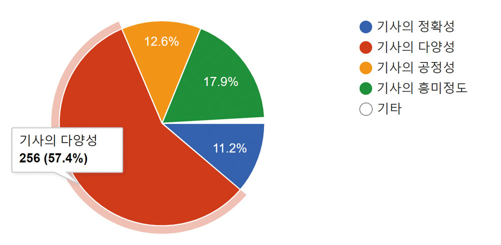 ▹ 다양한 내용보다 보다 정확하고, 상세한 기사, 의미가 뚜렷하게 전달되는 기사가 게재됐으면 한다.