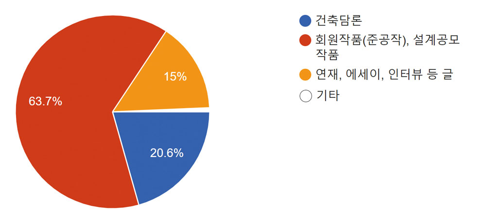 ▹ 회원작품 비율을 줄이고, 특집과 연재물의 비중을 늘려서 학술적인 잡지가 됐으면 좋겠다. 품위와 격 조있는 건축사지가 되길 바란다.