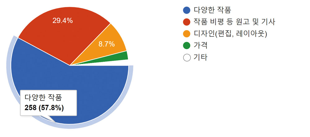 ▹ 작품보다 현실적인 담론이 좋다. ▹ 다양한 작품 수록이 필요하다.