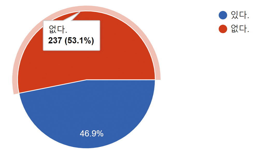 반면, 구독하고 있는 잡지가 없다는 응답자는 53.1%로 설문조사 참가자의 과반수를 넘는 수치가 나 타났다. 이유를 물어본 결과 ‘별로 도움이 되는 부분이 없다고 생각’한다는 대답이 45.6%로 나타났 으며 외에도 ‘업무에 바빠서(27%)’, ‘관심이 없어서(15.6%)’, ‘인터넷에 더 좋은 정보가 많다고 생각해 서(5.1%)’, ‘경제적인 여유가 없어서(1.7%)’등의 이유로 구독을 하지 않는다고 밝혔다.