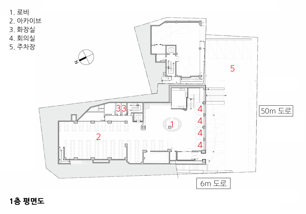 Archive is a chronology of time, a trace, and the word itself is conceptual. Design is started with a program called Archive. In addition, regardless of the geographical background of business which is based on Sinsa-dong, Nonhyeon-dong, and Samseong-dong for decades, settling in a new place that was relocated to Guui-dong was another design concept.