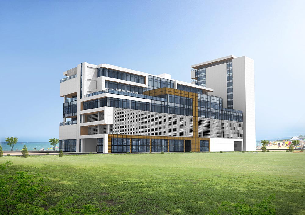 The CEO did not want to build a plain and square rectangular building requiring huge sums of money, and he was interested in A3 projects that carried out a lot of unique elevation works in Pohang. The project had to be a place that satisfies both the economic aspect and the role of a hot place visited by many people. Team members made efforts to plan the plane most reasonably after consideration, but decided to utilize terraces and eaves in several parts to the extent that the floor area ratio remains. All the team members tried to decorate the beauty of the elevation. 3D work screen and drawings were moved at the same time, and various mass works were done within the limit of the floor area ratio.