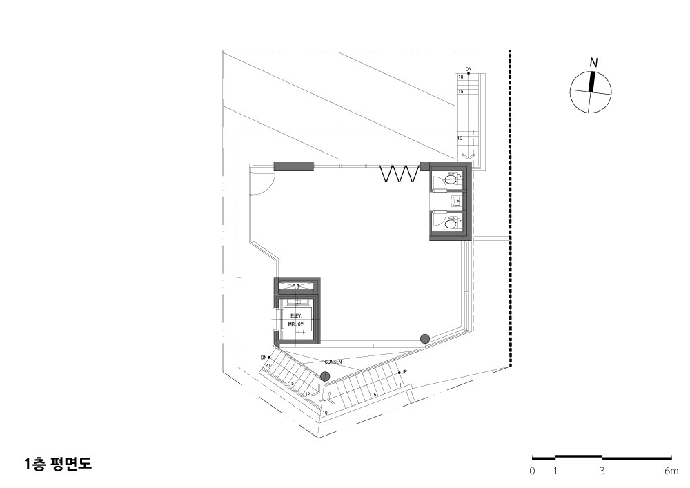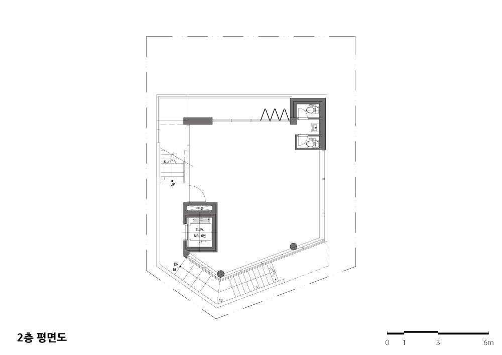 VOID LINE Architect | Hong, Mansik _ Richue Architects Client | Kim, Yeonho Project team | Kim, Seonhee · Lee, Eunhui Location | 44, Dosan-daero 11-gil, Gangnam-gu, Seoul, Korea Program | Neighborhood facility Site area | 187.90㎡ Building area | 112.52㎡ Gross floor area | 504.18㎡ Building to land ratio | 59.88% Floor area ratio | 268.32% Building scope | B1F - 5F Structure | RC Exterior finishing | Exposed concrete Design period | Jan. 2018 ~ Feb. 201 |