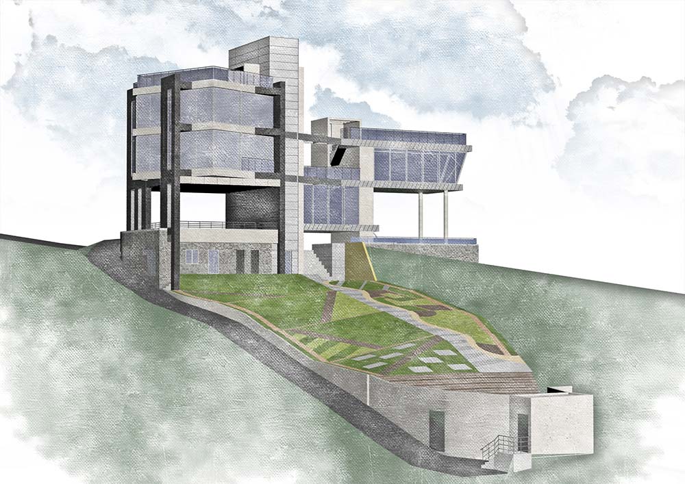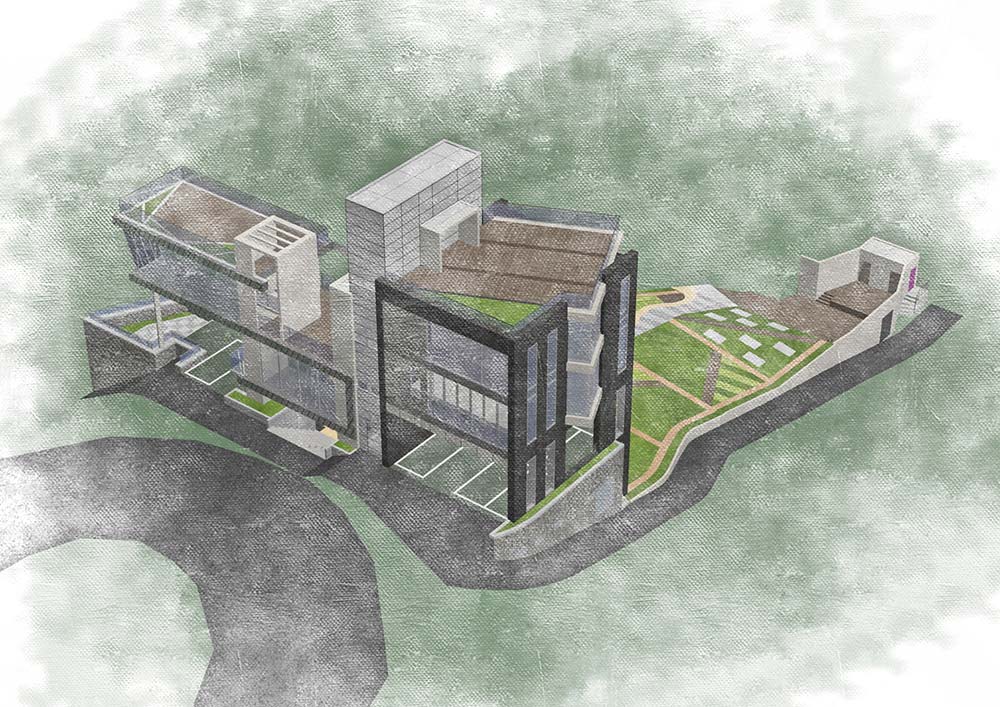 Building mass opened everywhere to allow a great sense of openness to anyone passing by. I also tried to introduce nature by creating various terraces.