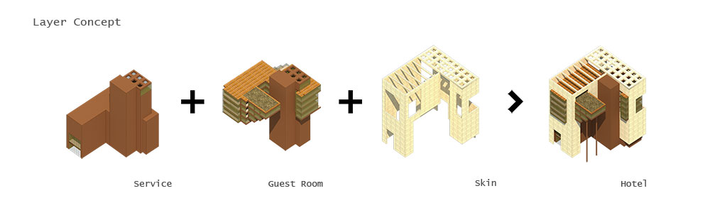 Hotel K itself consists of a mix of journey and emotional route. Unusual space and form create depth, high, contrast and extension that shows the unknown world. For the purpose of journey, the building composes a poem of experience through void, valley and cliff.