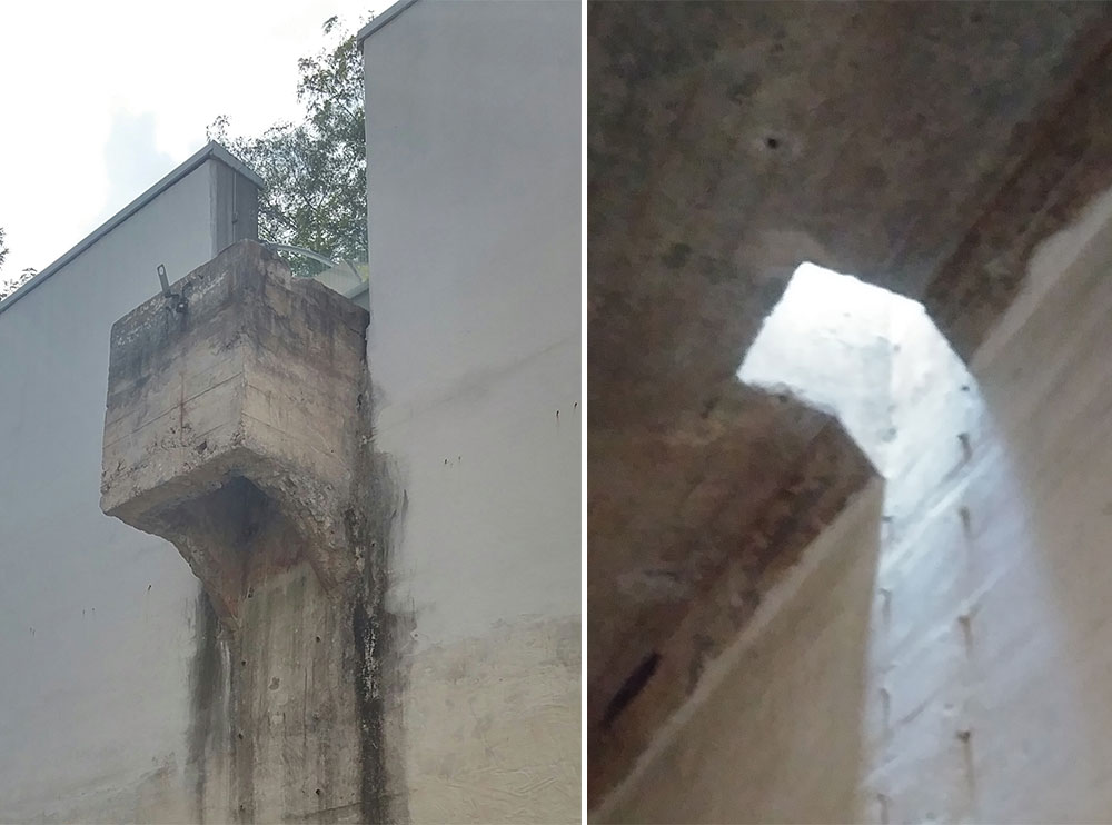 문학관은 3개의 공간으로 구성되어 있다. 제1전시실은 시인과 관련된 기록물들 이 전시되어 있는 평범한 전시관이다. 제2전시관은 위로는 하늘이 열려있지만 사 방이 높은 벽으로 막혀 있다. 청운수도 가압장과 물탱크를 개조해서 만든 것이라 고 한다. 뒤쪽은 제3전시관이다. 천정까지 막혀있다. 밖으로 난 구멍으로 빛이 들 고 있었다. 한때 물이 들던 곳으로 빛이 흘러들고 있었다.