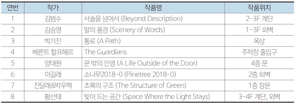 ■ 참여작가 [예술분야] 김범수, 김승영, 박기진, 베른트 할프헤르, 양대원, 이길래, 진달래&박우혁, 황선태 [건축분야] (주)공간종합건축사사무소 이상림, 남석우, 전혜원, 이충헌, 강은경