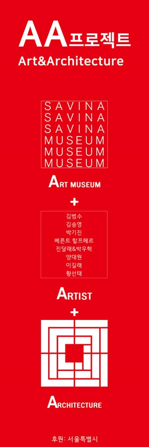 사비나미술관 설계를 진행하면서 미술관의 주인공은 건축물이 아닌 전시되어 있는 미술품이어야 한다는 생각을 가지 고 있던 중 건축주인 사비나미술관 이명옥 관장의 흥미로운 제안이 있었다. 예술분야 작가들이 설계 및 시공단계에 같 이 협업을 통해 건축과 예술이 조화로울 수 있는 사례를 만들어 보자는 것이었다. 예전에는 건축, 조각, 예술영역의 구 분 없이 여러 분야를 넘나드는 작가들도 많았지만 현대에 이르러서는 각각의 분야가 전문분야로 세분화됐다. 8명의 작가는 저마다의 작업방식으로 건축을 해석하거나 협업으로 작품을 완성했다. 미술관을 찾는 관람객은 건축과 미술의 사라진 경계를 경험하며 곳곳에서 예기치 못한 즐거움을 느끼고 미술에서 건축으로 확장된 작품들을 다양한 방 법으로 감상하게 된다.